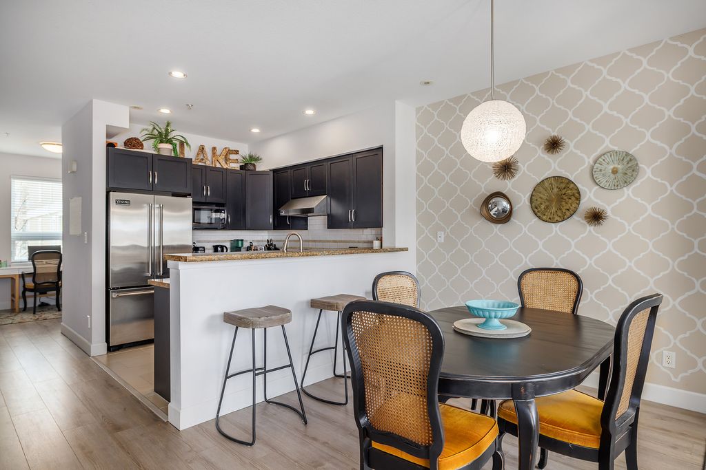 Welcome to Gyro Beach Townhomes- located steps to the beach, grocery stores, eateries, coffee shops, retail stores, liquor stores, medical clinics, banks, and so much more; this location is genuinely hard to beat for the price! Key features include 3 bedrooms plus an open air den, 2.5 baths, double car heated garage with additional space for storage, covered deck with gas bib, and a private fully fenced south west facing yard. Spacious, bright, great styling and quality finishes, including granite counter tops, tile, vinyl plank, 9ft ceilings, Viking gas stove, forced air heating and cooling, makes this a value priced package for owners and investors alike. Come experience what makes the Lower Mission so desirable to live in!