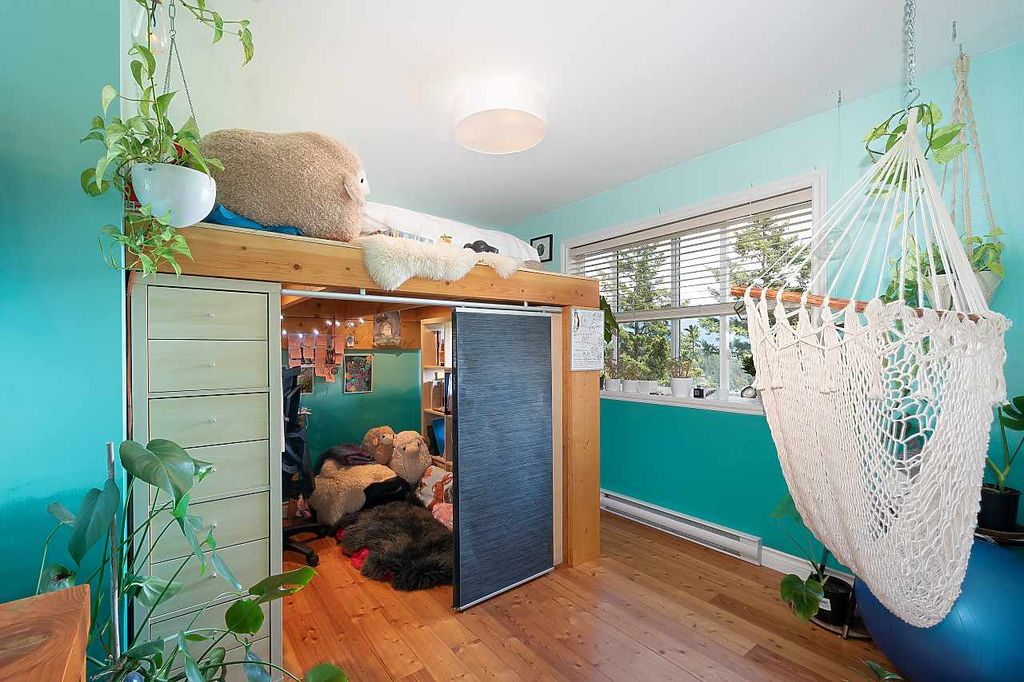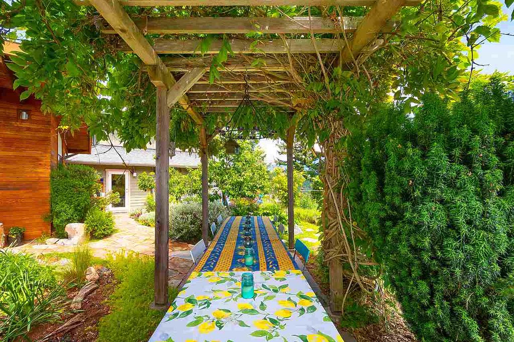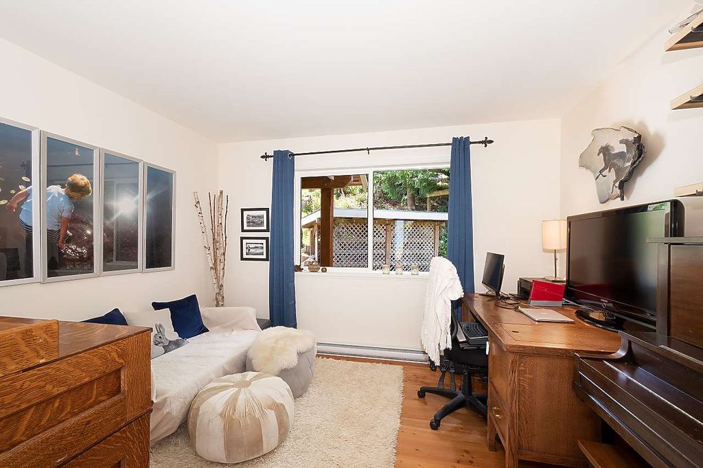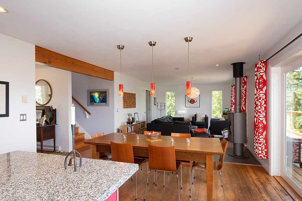 One of the rare large Cates Hill properties, 985 Seaview offers both privacy and prized proximity to Snug Cove. This three to four bedroom, two and a half bath family home features that fantastic Cates Hill view that everyone loves - especially form the curved windows gracing the upstairs master suite. On the south side of the home is a sunny edible garden, irrigated by a rain-water collection system and featuring a flagstone patio, greenhouse and an outdoor dining room. A detached studio sits amidst the garden - known as the Eco-Shed, it was featured in "O At Home" magazine for its sustainable design and construction. The large basement offers plenty of storage space, and a private forest trail whisks you down to Artisan Square and the Bowen Island Community School.
