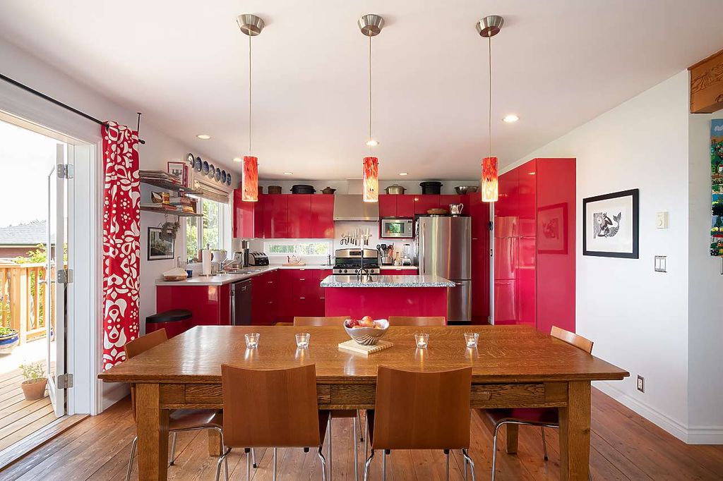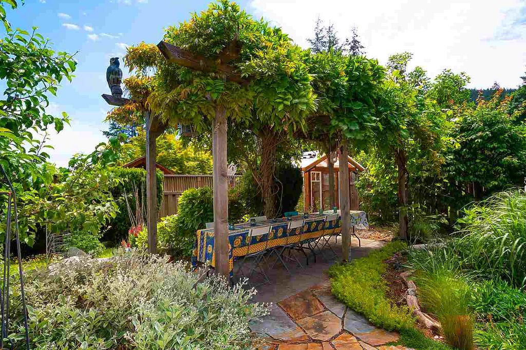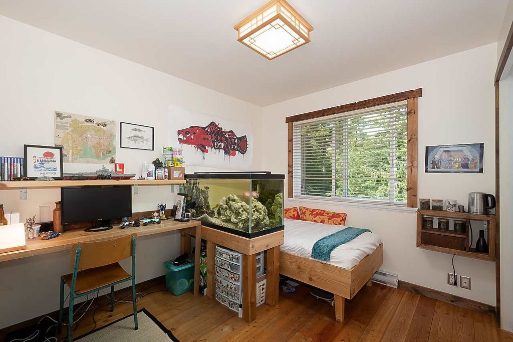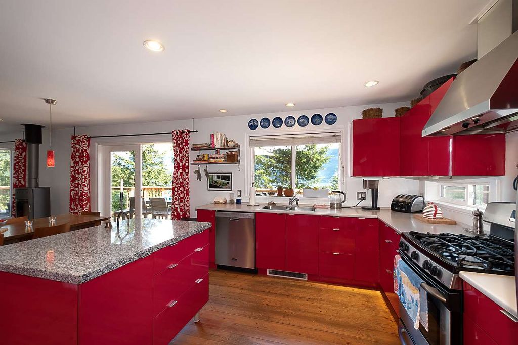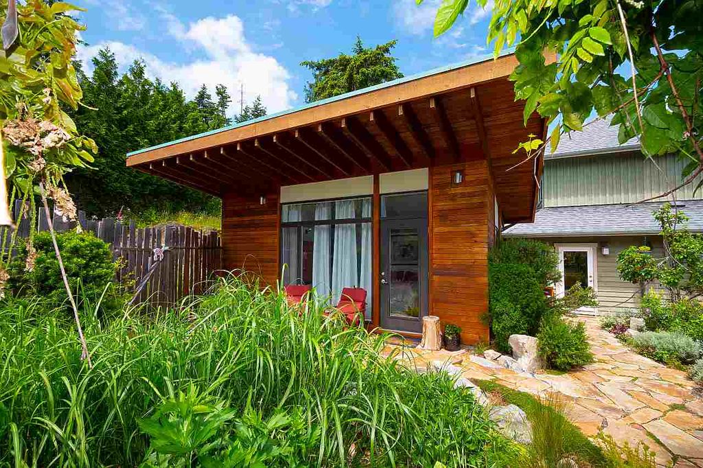 One of the rare large Cates Hill properties, 985 Seaview offers both privacy and prized proximity to Snug Cove. This three to four bedroom, two and a half bath family home features that fantastic Cates Hill view that everyone loves - especially form the curved windows gracing the upstairs master suite. On the south side of the home is a sunny edible garden, irrigated by a rain-water collection system and featuring a flagstone patio, greenhouse and an outdoor dining room. A detached studio sits amidst the garden - known as the Eco-Shed, it was featured in "O At Home" magazine for its sustainable design and construction. The large basement offers plenty of storage space, and a private forest trail whisks you down to Artisan Square and the Bowen Island Community School.