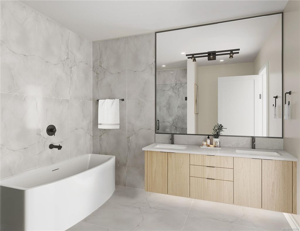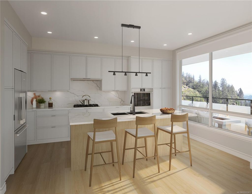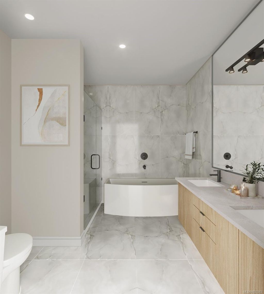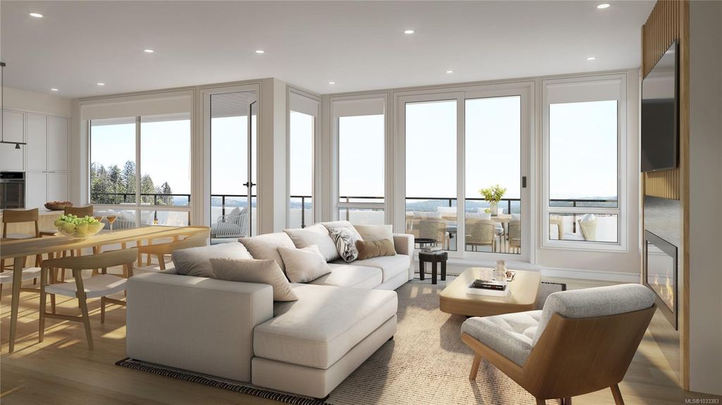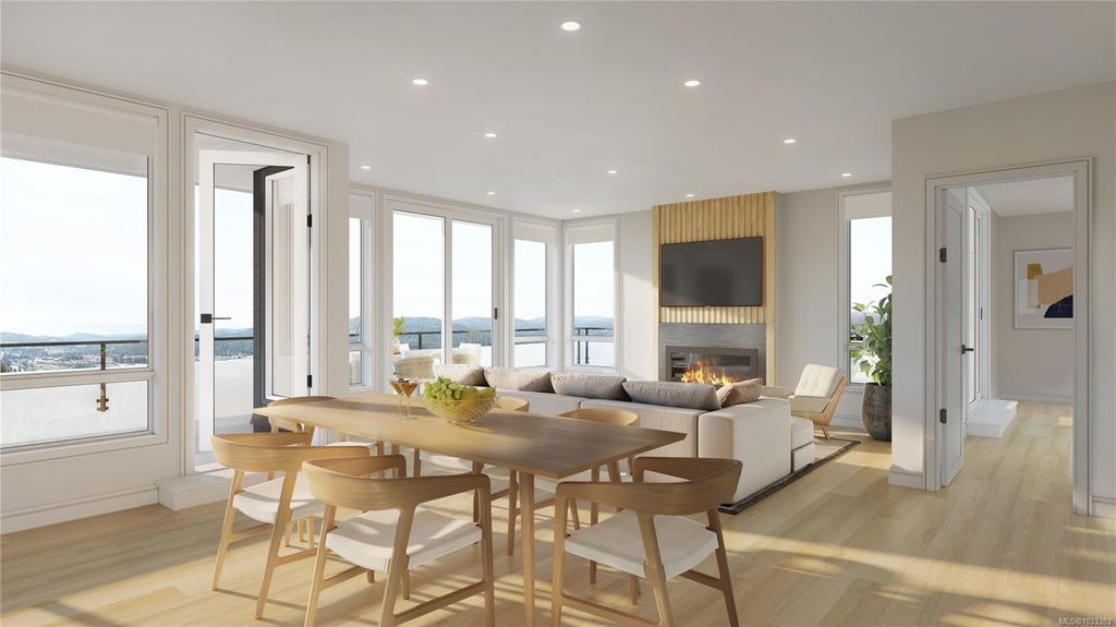 Discover the ultimate experience of indoor & outdoor living in this stunning 3 bed, 2 bath penthouse with over 1500 sq ft of living space & incredible 1100 sq ft patio with views of the mountains & downtown Victoria. This luxury residence offers privacy, sunshine, and sophistication in every detail. Soaring 10-foot ceilings & oversized windows flood the space with natural light, while high-end finishes like quartz countertops and backsplash, Fisher & Paykel appliances, and heated flooring in the ensuite add everyday luxury. Four efficient heat pump heads ensure year-round comfort. This is a rare opportunity to own a serene and sophisticated retreat with all the comforts of modern penthouse living. Included with this home are 2 underground parking spaces, storage locker, and access to the building amenities including a state-of-the-art gym, community gardens, bike wash, dog wash, and outdoor patio.