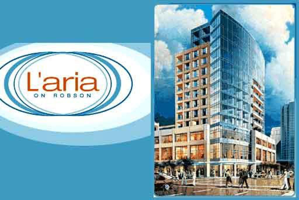 THE L'ARIA on Robson at Seymour. Downtown's newest highrise residences. Great fl oor plans with either enclosed or open balconies. Stunning views framed by floor to ceiling glass. All homes feature granite and marble countertops, electric f replaces, Kitchen Aide (architect series), stainless steel appliances including gas stove and microwave with hood fan. All the benefits and amenities of Downtown living right at your front door. Fully furnished display suite at presentation centre. O pen: Saturday - Thursday 12:00-6:00 pm.