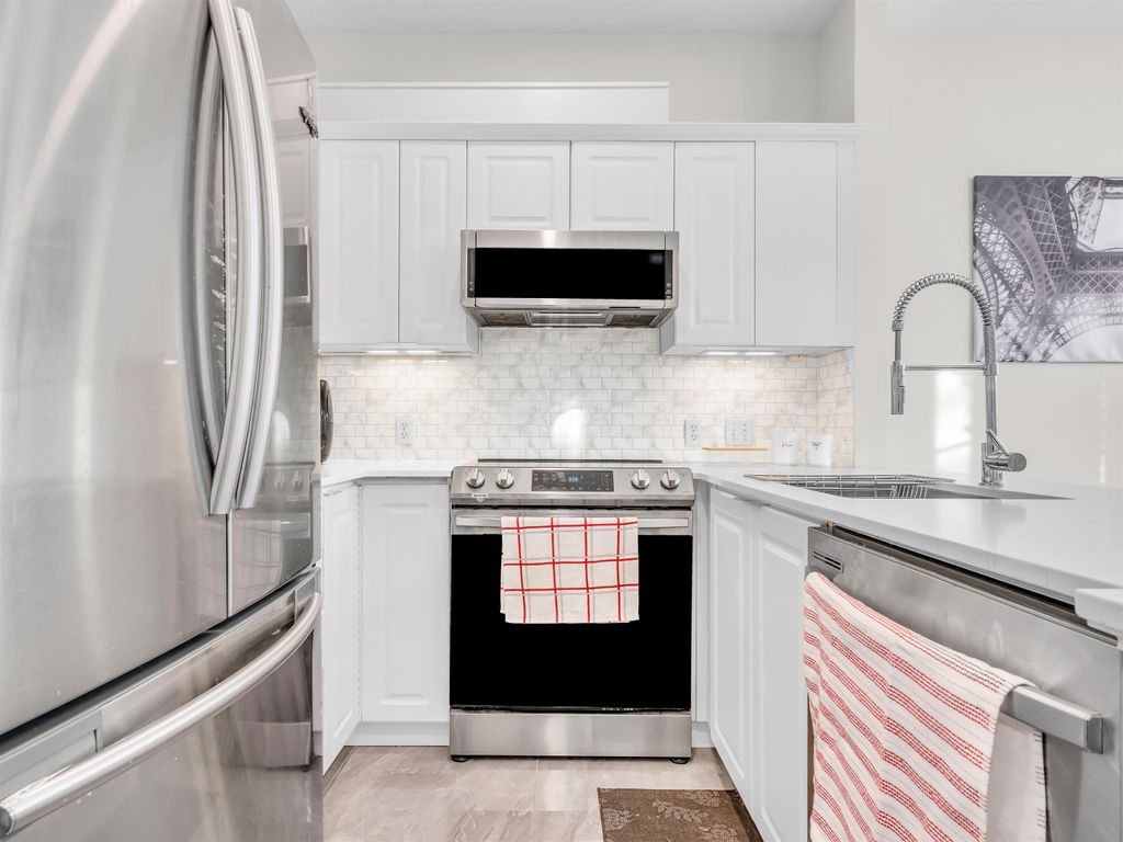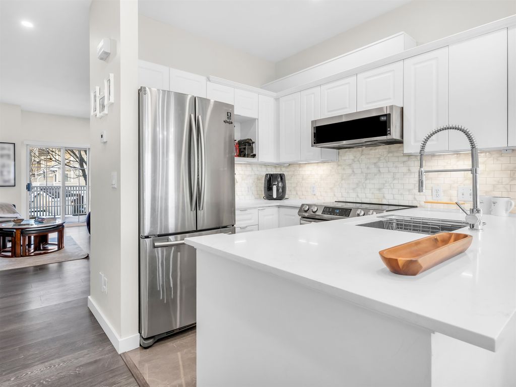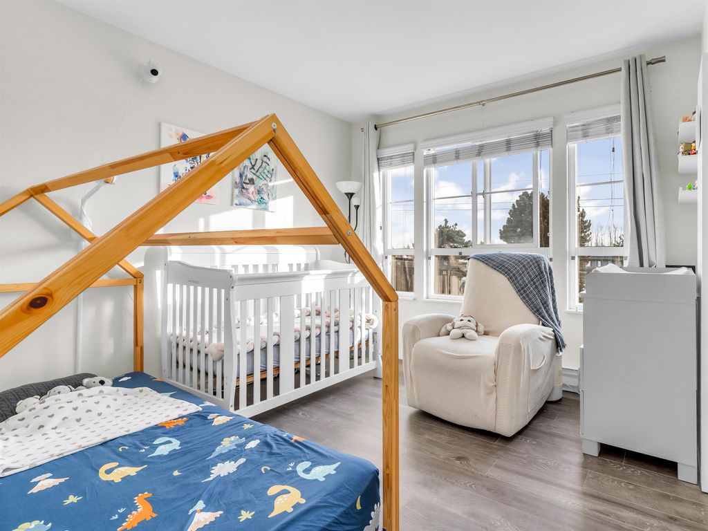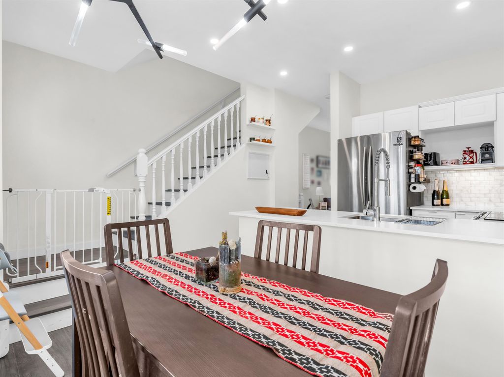 RICHMOND MEWS.. Family friendly unit townhouse complex. 1190 sq. ft. 2 bedroom & Den (Now Laundry which can be converted back to Den), 2 bathroom, 2 decks, 2 parking with 9 foot ceilings on main floor. Upgrades include, all lighting to LED, roofing was re-done in 2020, Window's and siding upgraded in 2020, Guardrail & Exterior painting done in 2024, laminated new flooring and tile through out the unit with waterproof membrane installed under bathroom flooring. Updated smoke detectors and CO2 in 2023, Kitchen comes with stainless steel appliance and NEW quartz countertops. Conveniently located to schools, transit, shopping, and community center. Easy to show but by appointment only. Call Now.