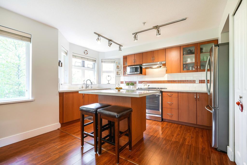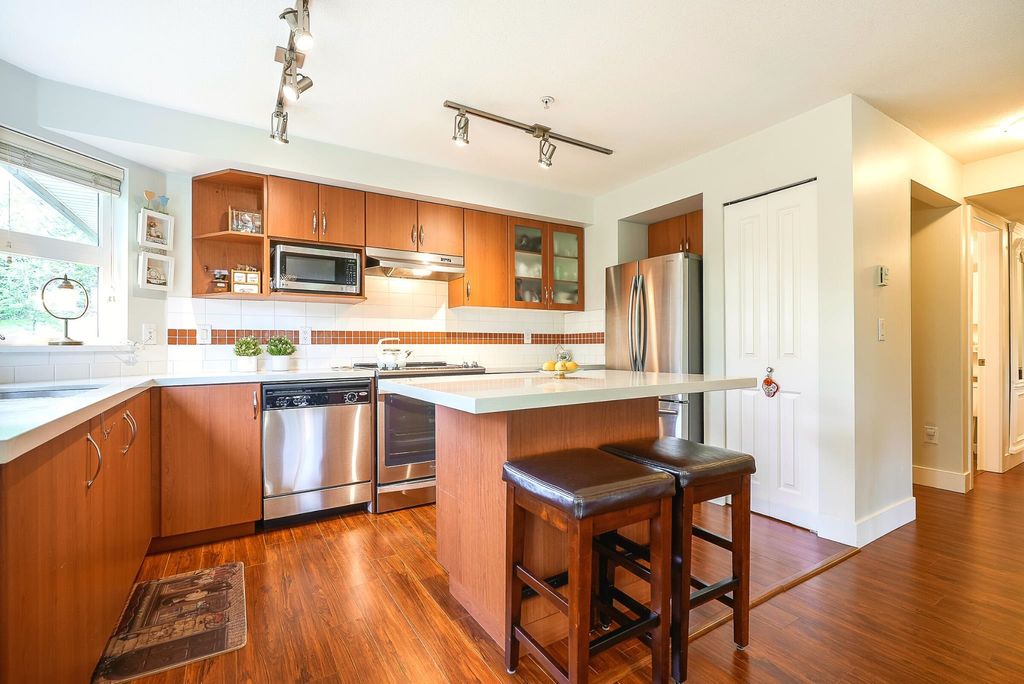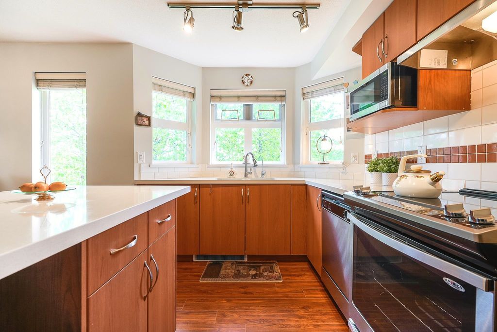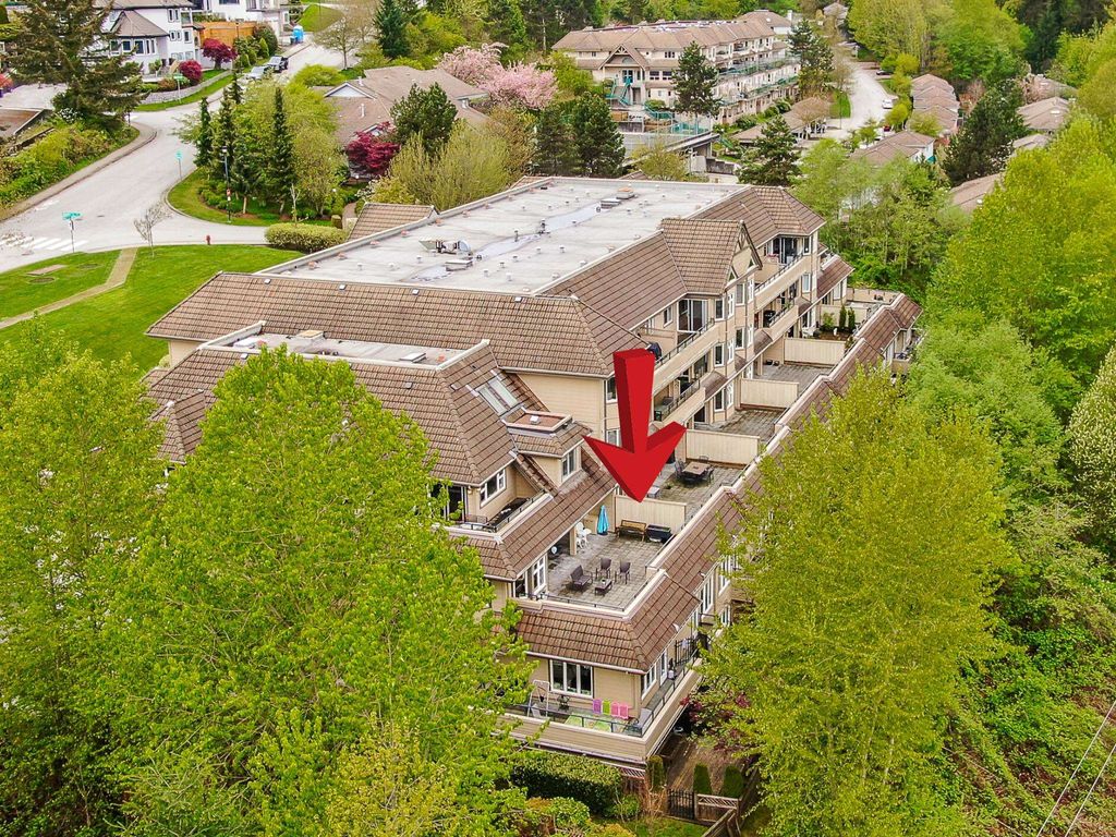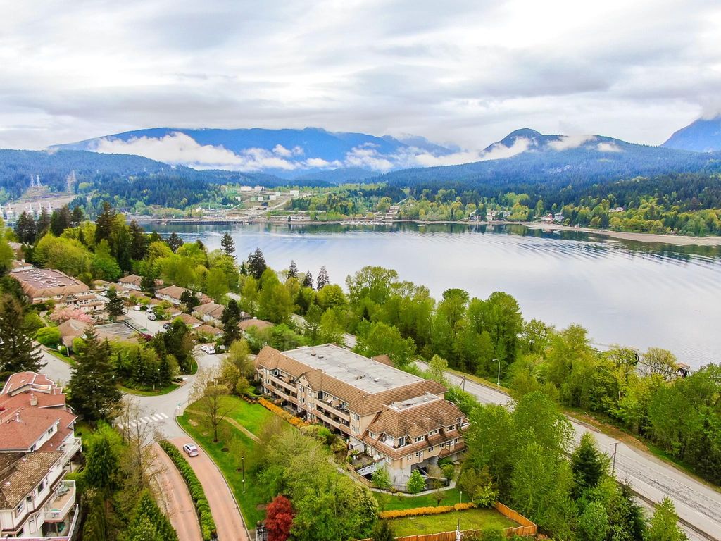 Gorgeous 3 Bed & Den, 2 Bath condo at 'Shoreline Villa' in Port Moody! This immaculate corner unit totals 1257 Sqft of living space, & features upgraded laminate flooring, quartz counters, kitchen island & sink, upgraded washer & dryer, and newer S/S stove & fridge!! East facing kitchen with greenbelt view. MASSIVE 614 Sqft Balcony with views of Burrard Inlet, trees, & surrounding mountains!! Perfect to gather with family & friends, BBQ, or simply relax and unwind. Large Master with ensuite & remaining 2 beds both a good size. Den can be a pantry, office, or extra storage. 2 Parking stalls & 1 Storage locker also included! This Rain-screened complex is close to dining, shopping, beaches, skytrain, and much more.. *Viewings by appointment only- Sat & Sun, May 14th & 15th from 1-3pm.