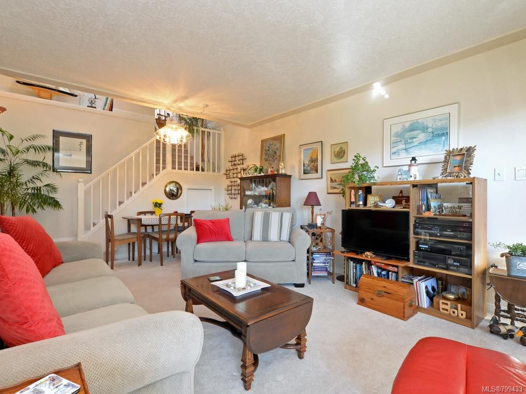 This two bedroom/two bathroom townhouse in the View Royal Estates is an excellent affordable alternative to a condominium. Unique in that you have your own single car garage, additional parking in the common area, lots of storage in the two unfinished storage areas plus a crawlspace. The bright cozy floor-plan features an elevated ceiling in the stairwell, two skylights and with the south facing exposure great light all day long. Inline living/dining room with natural gas fireplace. Master bedroom with walk-in closet and shared 4 pce ensuite/main bath. Pride of ownership is evident as this home is immaculate throughout. The convenient View Royal location is adjacent to the galloping goose trail, Juan de Fuca rec centre, Thetis Lake, VGH hospital, shopping, schools and only a 15-minute commute to downtown Victoria. Family and pet friendly.