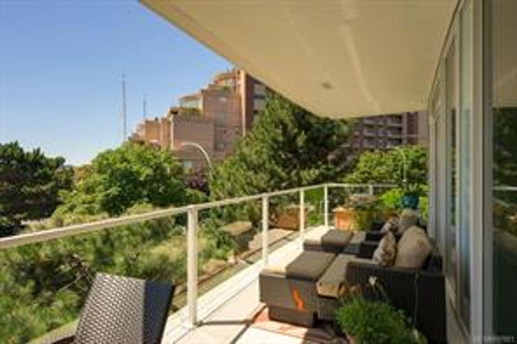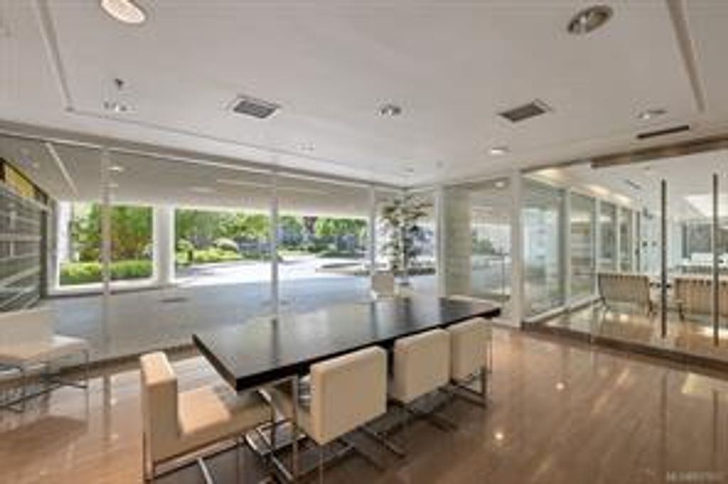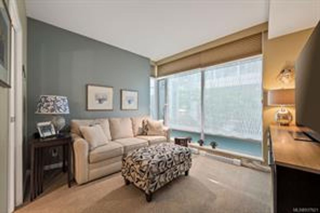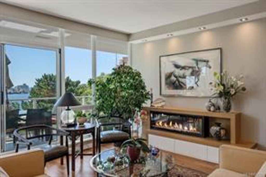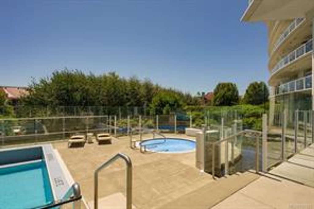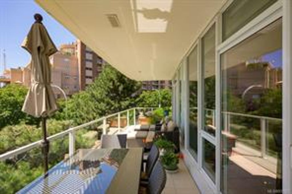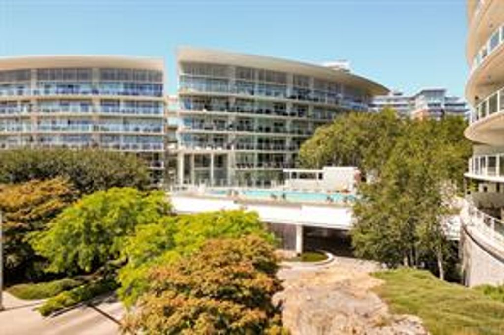 Discover Shutters Residences - a prestigious address in Victoria's Inner-Harbour. Premier 3-acre architecturally unique property enhanced by tranquil water gardens & resort-styled amenities: Heated outdoor lap pool, 2 hot tubs, steam room, sauna & fitness centre. This corner suite has 2 bedrooms, 2.5 baths, large living room & separate dining room can easily be repurposed as family area or den. Its main-floor location offers easy access to Kimta Rd. Its SW-facing balcony is perched high above Songhees Rd, ensuring privacy & views. The suite boasts wall to wall floor to ceiling windows, heated marble floor in Master ensuite, new custom kitchen offering upgraded high-quality appliances-panelled fridge/freezer & dishwasher, gas stovetop-electric convection oven, quartz countertops/backsplash, full width/height built-in custom wall-unit in living room with generous integrated wine-fridge & integrated banquette table/bench seating. Huge entertainment sized balcony with natural gas outlet.