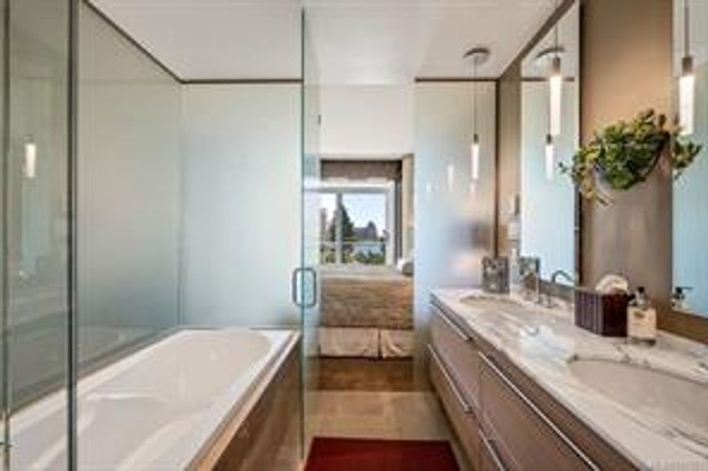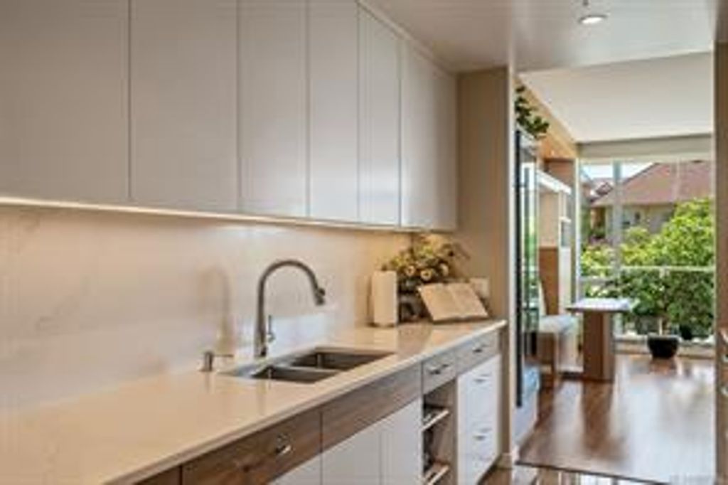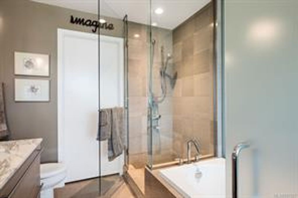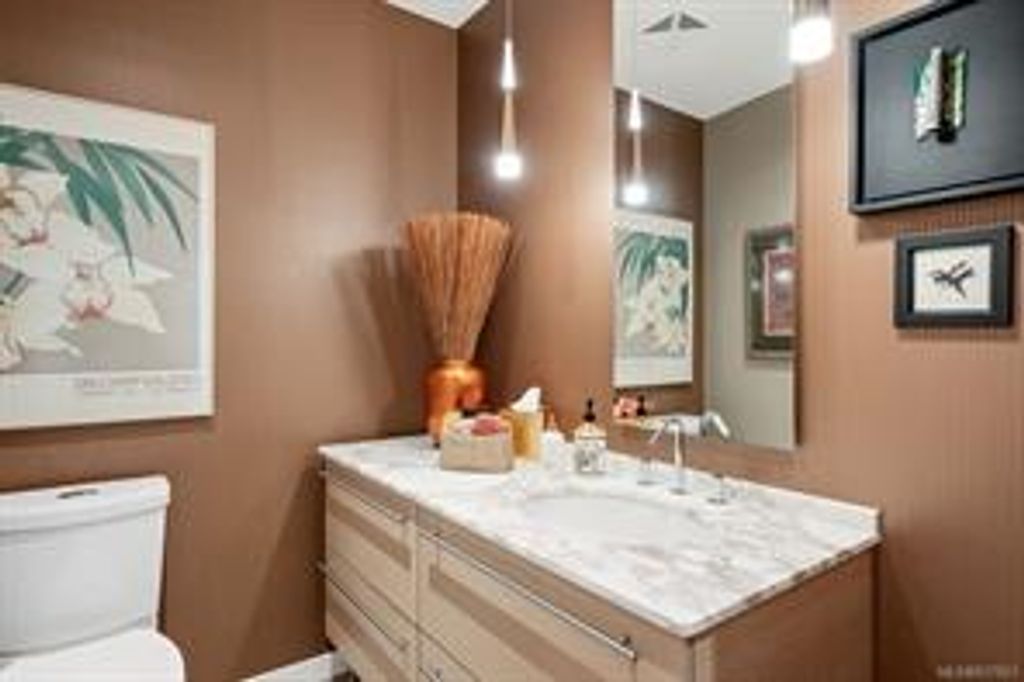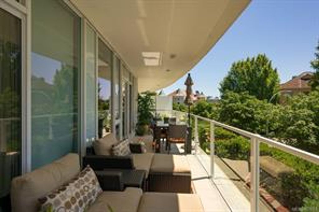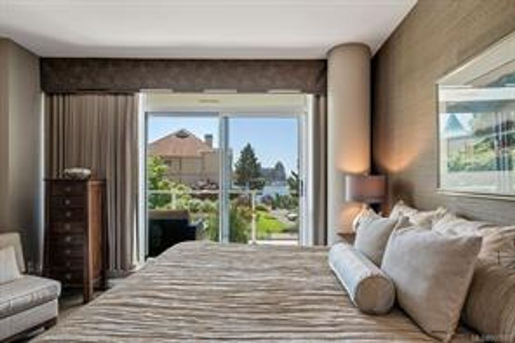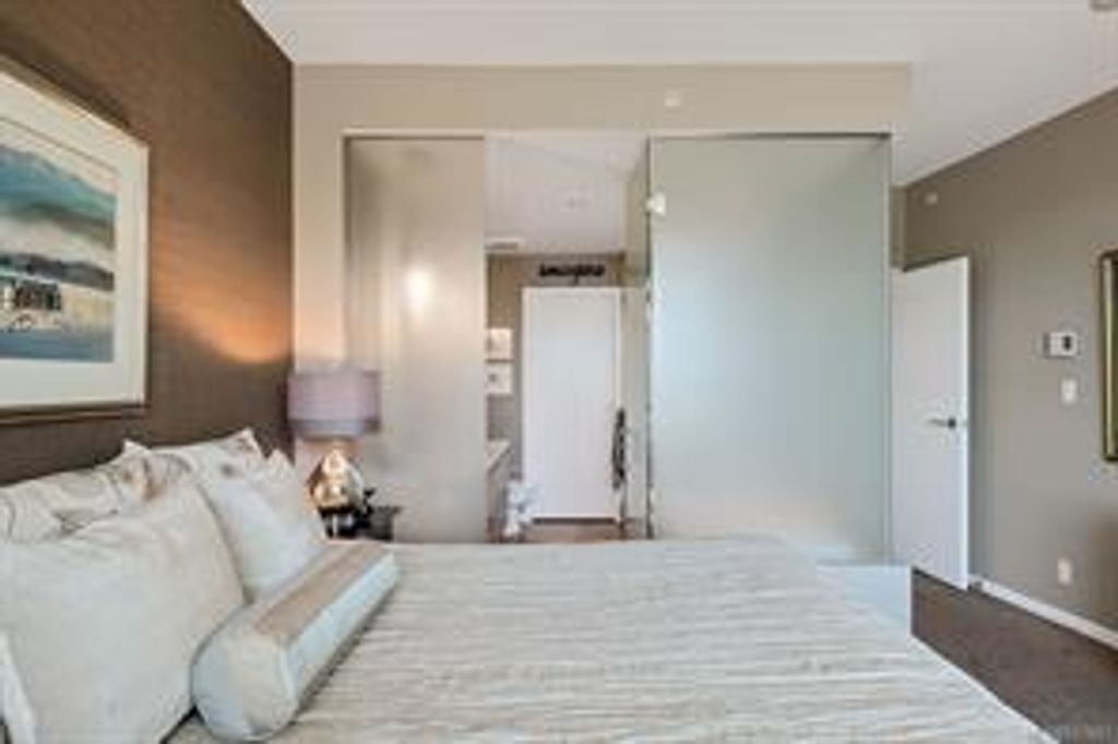 Discover Shutters Residences - a prestigious address in Victoria's Inner-Harbour. Premier 3-acre architecturally unique property enhanced by tranquil water gardens & resort-styled amenities: Heated outdoor lap pool, 2 hot tubs, steam room, sauna & fitness centre. This corner suite has 2 bedrooms, 2.5 baths, large living room & separate dining room can easily be repurposed as family area or den. Its main-floor location offers easy access to Kimta Rd. Its SW-facing balcony is perched high above Songhees Rd, ensuring privacy & views. The suite boasts wall to wall floor to ceiling windows, heated marble floor in Master ensuite, new custom kitchen offering upgraded high-quality appliances-panelled fridge/freezer & dishwasher, gas stovetop-electric convection oven, quartz countertops/backsplash, full width/height built-in custom wall-unit in living room with generous integrated wine-fridge & integrated banquette table/bench seating. Huge entertainment sized balcony with natural gas outlet.