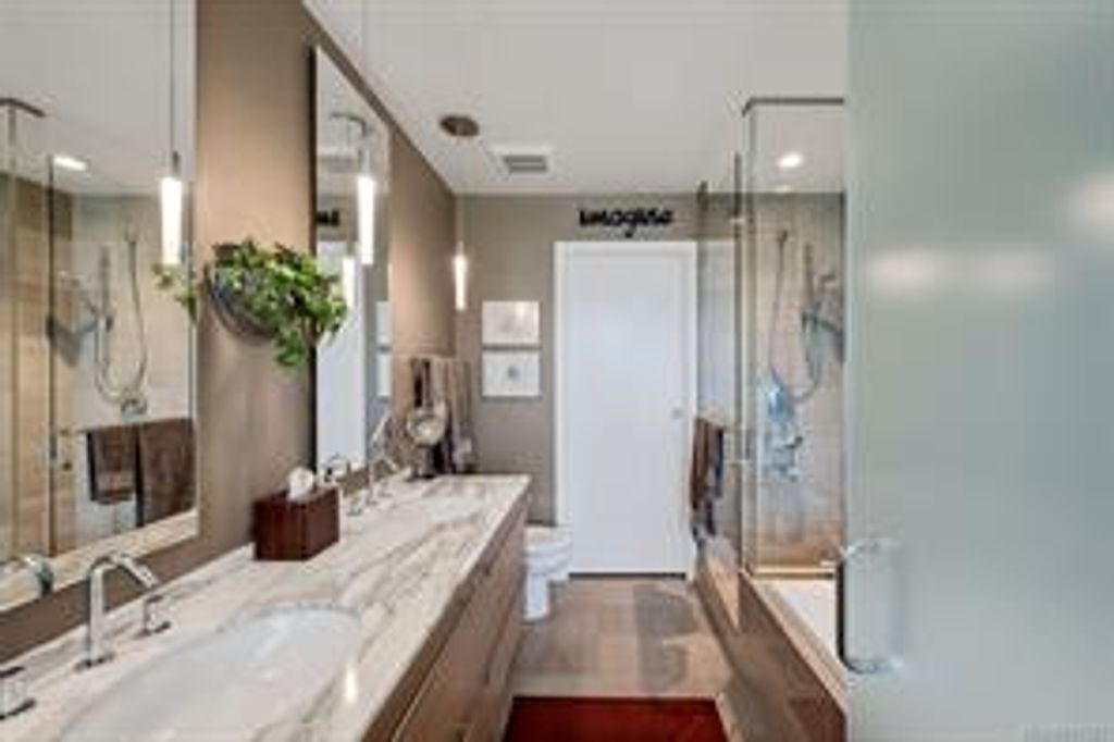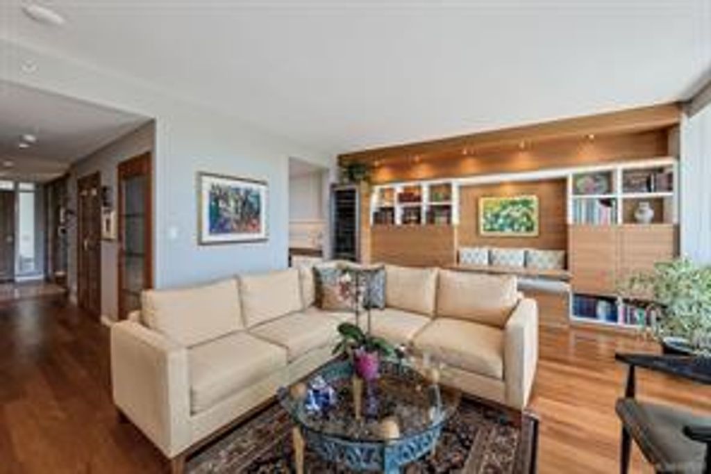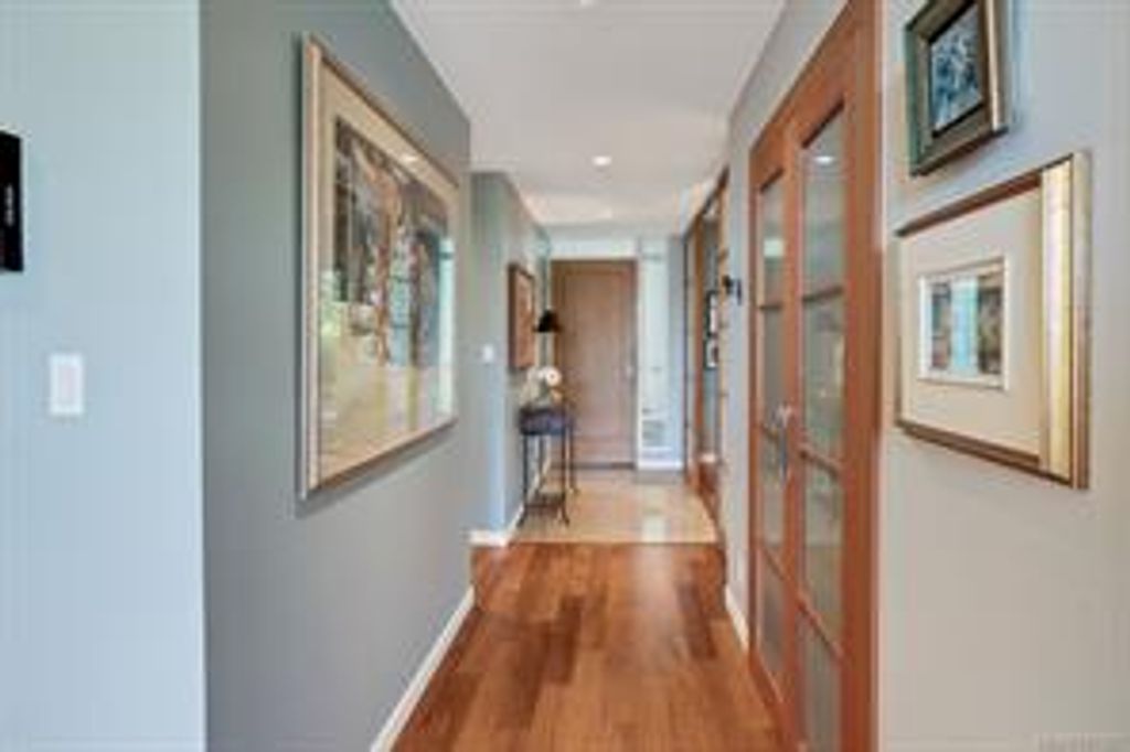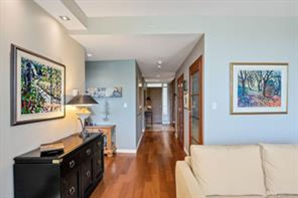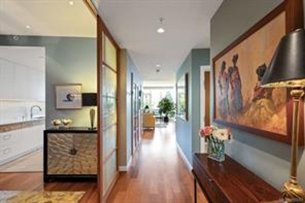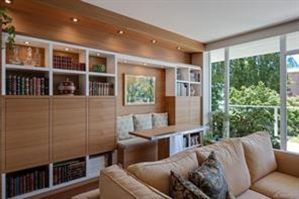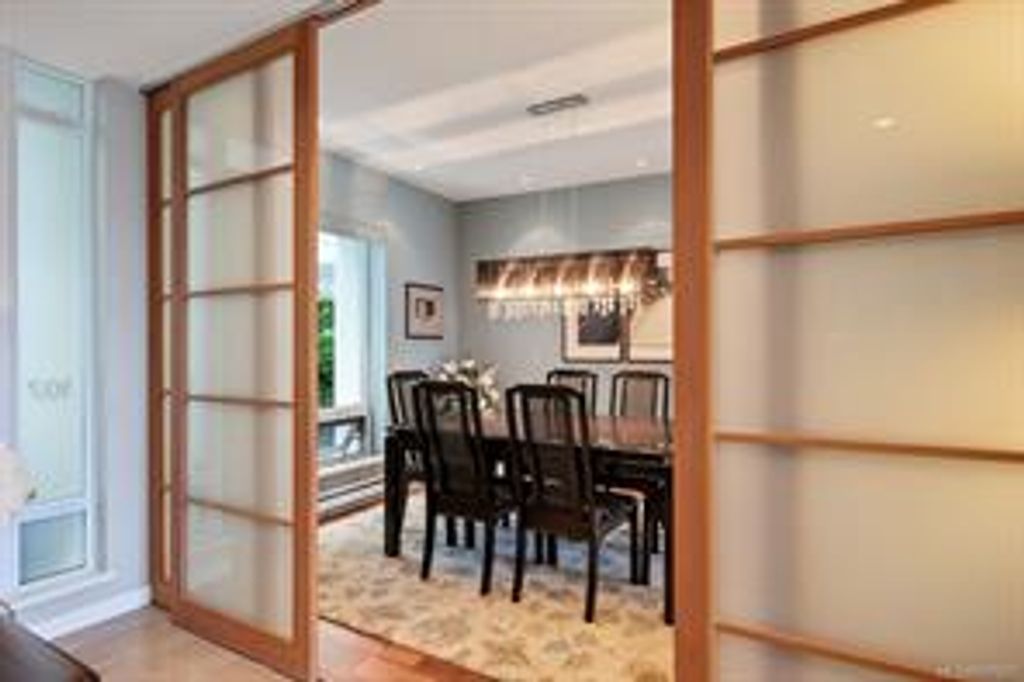 Discover Shutters Residences - a prestigious address in Victoria's Inner-Harbour. Premier 3-acre architecturally unique property enhanced by tranquil water gardens & resort-styled amenities: Heated outdoor lap pool, 2 hot tubs, steam room, sauna & fitness centre. This corner suite has 2 bedrooms, 2.5 baths, large living room & separate dining room can easily be repurposed as family area or den. Its main-floor location offers easy access to Kimta Rd. Its SW-facing balcony is perched high above Songhees Rd, ensuring privacy & views. The suite boasts wall to wall floor to ceiling windows, heated marble floor in Master ensuite, new custom kitchen offering upgraded high-quality appliances-panelled fridge/freezer & dishwasher, gas stovetop-electric convection oven, quartz countertops/backsplash, full width/height built-in custom wall-unit in living room with generous integrated wine-fridge & integrated banquette table/bench seating. Huge entertainment sized balcony with natural gas outlet.