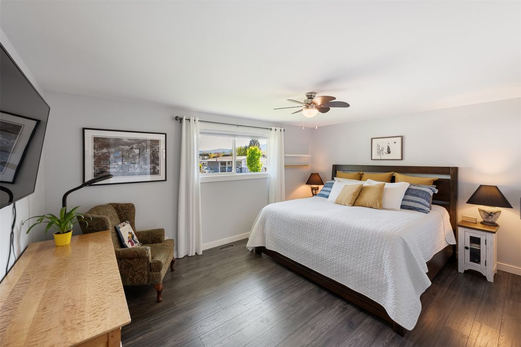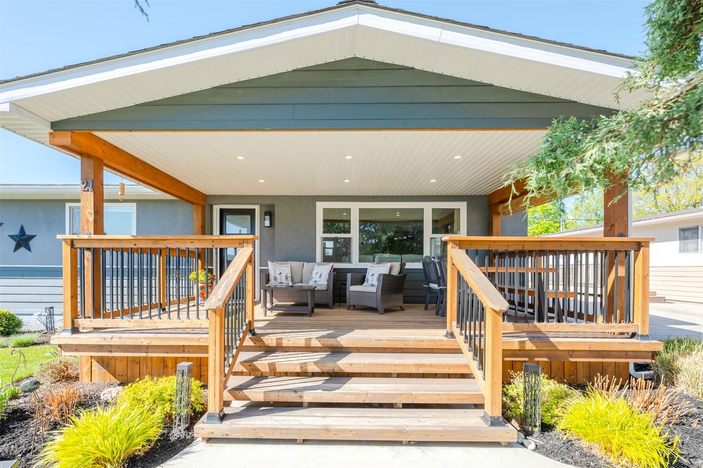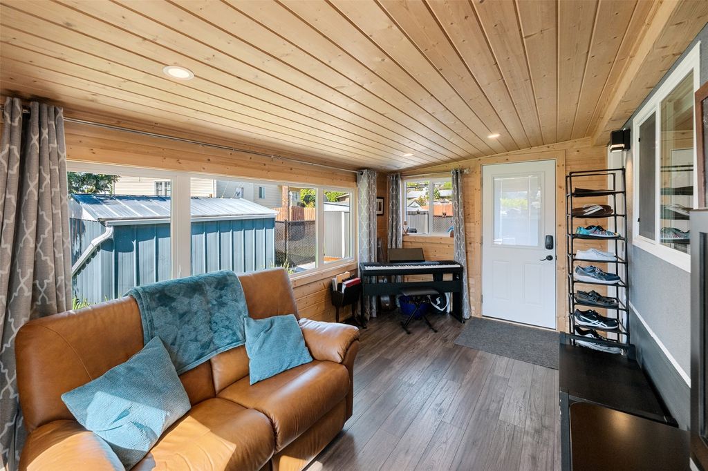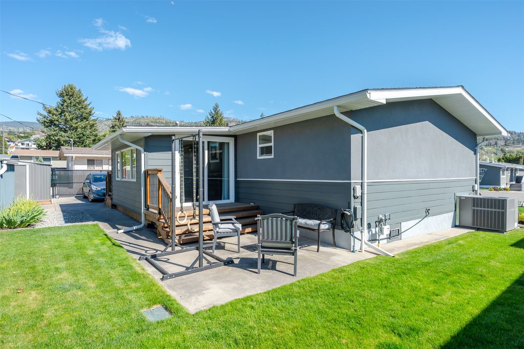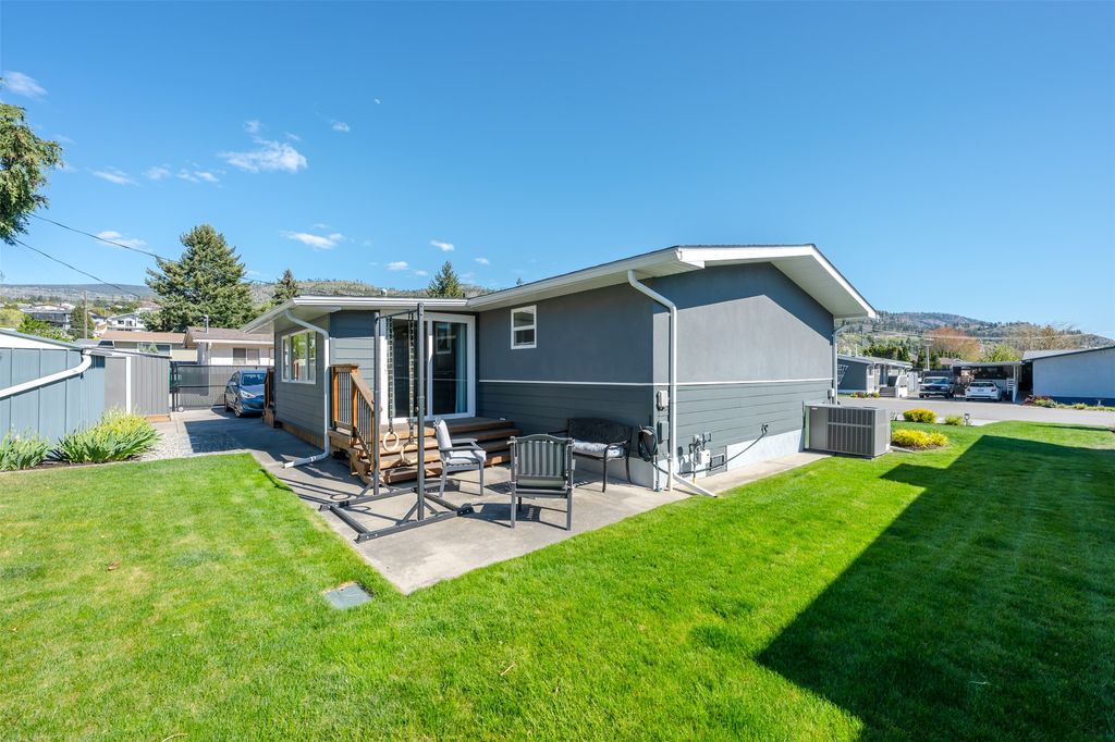 OPEN HOUSE SATURDAY MAY 2 FROM 11:00-1:00! Welcome to #21–2773 South Main Street in Holiday Park, Penticton. This beautifully renovated two bedroom, two bathroom manufactured home offers exceptional value and peace of mind, with extensive professional upgrades completed since 2018. No expense was spared in the renovation, with all work completed by qualified contractors. Major improvements include a new heat pump, updated plumbing and electrical, new roof, drywall, lighting, and flooring throughout. The modern kitchen features center island, quartz counters and quality finishes, creating a stylish and functional space for everyday living. You will love the gorgeous primary bedroom and three piece custom designed ensuite, and the bonus flex-room that can be used for a den, gym, or additional guests. Enjoy outdoor living with a covered front deck and spacious back patio, along with a professionally landscaped yard. Lots of parking for three vehicles including one secure space at the back. Situated in a quiet, well-maintained park on a no-thru road, this home offers both privacy and convenience, just minutes from shopping, amenities, and all that Penticton has to offer. Pad rent is $653/month and includes water, sewer, and garbage. One small pet is permitted with park approval. This is a 55+ community.
