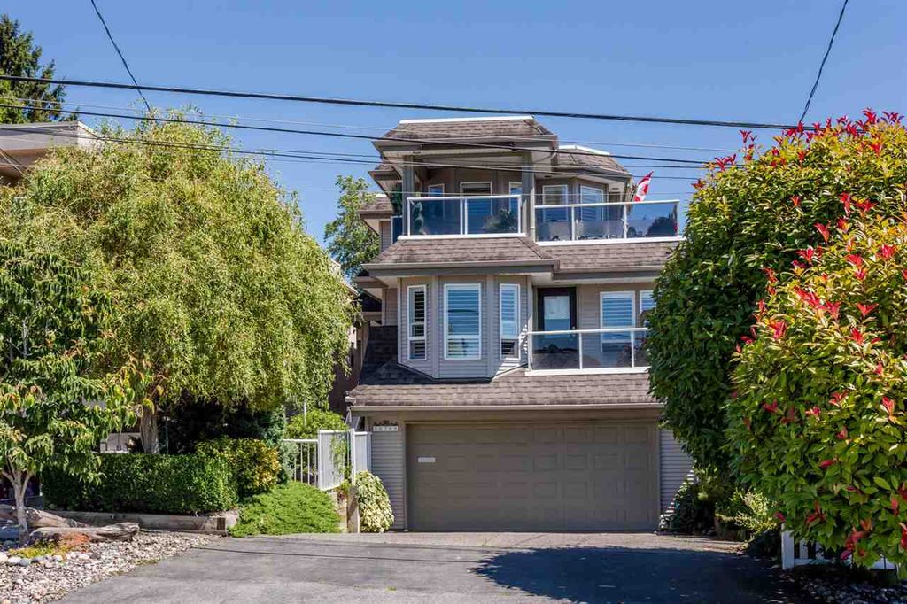 Beautiful custom designed ocean view home recently modernized. Large & bright spaces; open concept, 5 bedrooms, 5 bathrooms, fantastic master with fireplace, spa like ensuite with HansGrohe rain shower, view of the water from your private balcony. Hardwood flooring, SS Viking appliances, wine fridge, cambria quartz counter tops, designer colors, this home is in excellent condition.Live by the beach! Enjoy amazign sunsets overlooking the water from any of your 3 decks. Fully finished basement with separate entrance. Fantastic White Rock location. Easy access to Hwy 99, walking distance to restaurants, beach and shops.