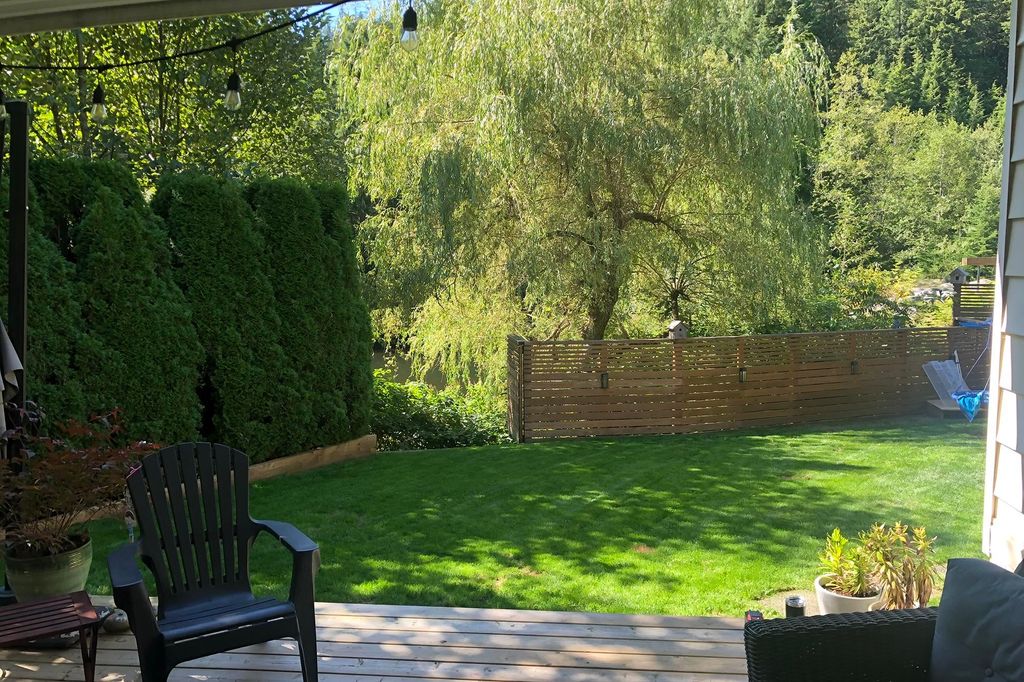 BEST LOT in Countryside with all the beauty that Anmore has to offer. Right on Anmore Creek with a bright fully fenced lot, this property is surrounded by trees and water with privacy on all sides. This updated 3 bdrm, 2 bath home has an open concept kitchen, eating and lvg area with a/c. A large covered deck is perfect for entertaining or to just sit and relax in nature. On the property is a separate finished modern studio space ready for your dream office, craft room or man cave. With a large lot just under 6000 sq.ft. you can also choose to build your dream home on a property that feels like an acre with adjoined preserved natural space. 1 min from transit, 10 min to Port Moody, 45 to downtown. Walk to the store, school or Buntzen lake.