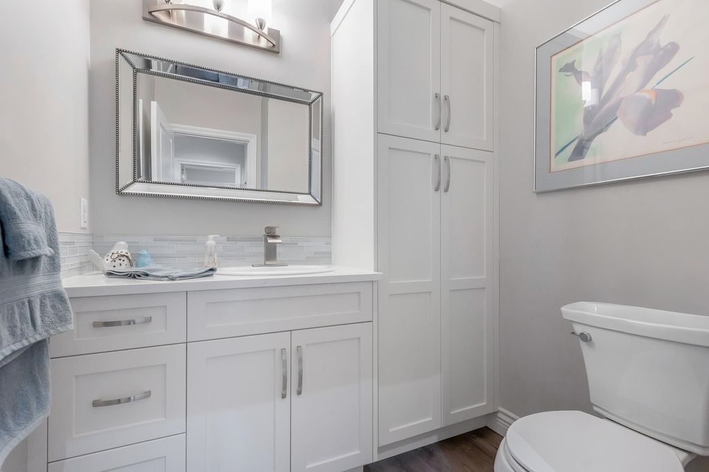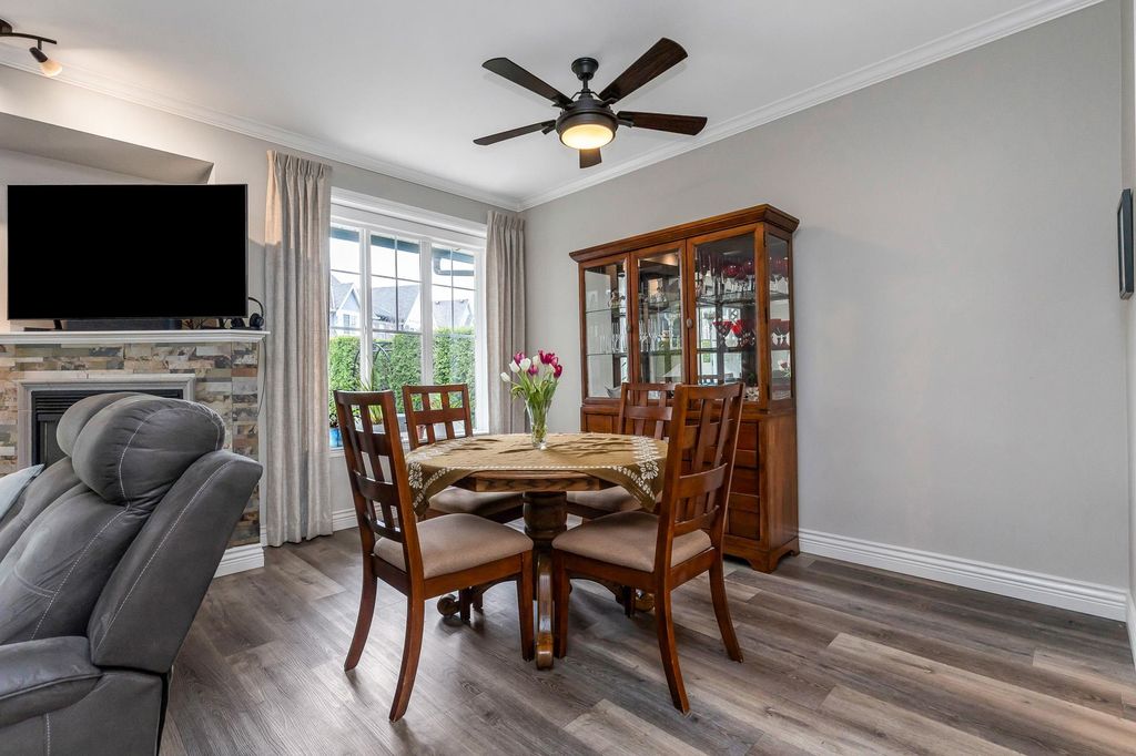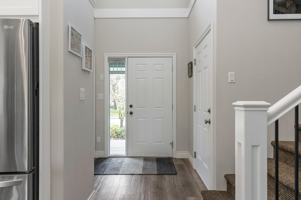 Step into luxury at this meticulously updated 5-bedroom townhome in Serenity at Garrison Crossing. This three-level gem boasts a grand entry with soaring vaulted ceilings leading to a sun-drenched, open-concept living space. Recent high-end upgrades feature vinyl plank flooring, fresh paint, and custom light fixtures. The gourmet kitchen shines with crisp white cabinetry, quartz countertops, and premium new appliances. Enjoy year-round comfort with a heat pump (A/C) and the luxury of heated floors in the upper bathroom. The versatile layout offers a main-floor primary suite, two bedrooms up, and two down alongside a family room with a sleek wet bar—perfect for entertaining or a teenager hangout. A private yard with street-gate access completes this stroll-to-everything retreat.