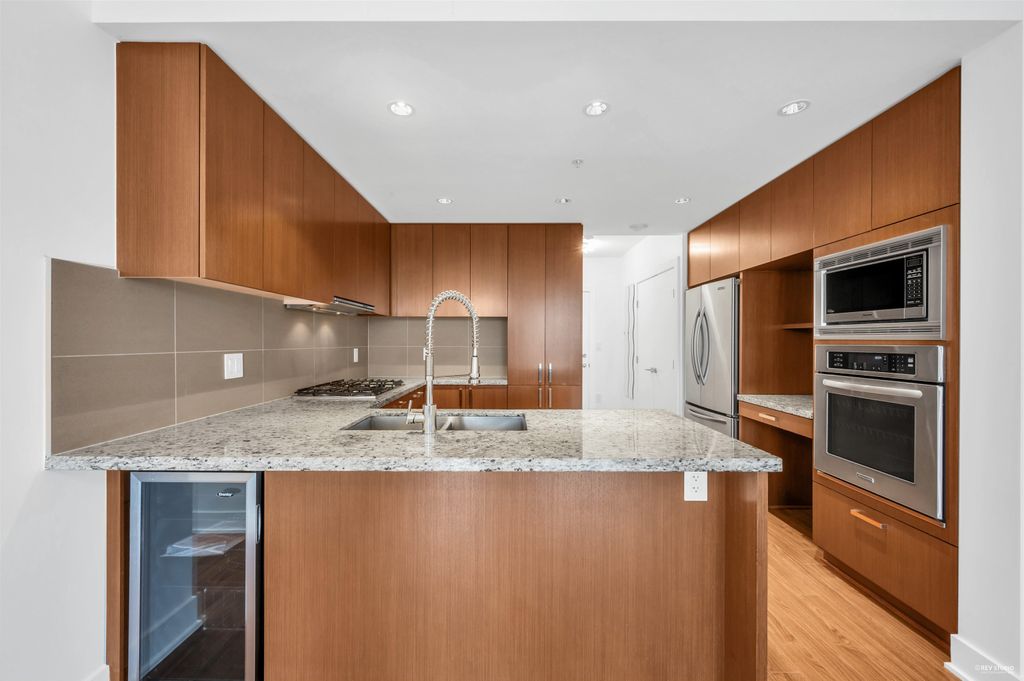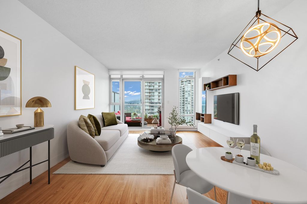 Discover the epitome of urban living at Cressey’s M1 in the vibrant heart of downtown Coquitlam! This stunning 2-bedroom, 2-bathroom, 2 parking spot condo is a coveted North West facing corner unit, offering an abundance of natural light & breathtaking views. Step inside & be greeted by 9’ ceilings, an expansive open layout, & oversized windows that seamlessly blend indoor & outdoor living with a spacious balcony. This home has been meticulously updated with luxurious finishes, including granite countertops, laminate flooring, & sleek stainless steel appliances. Enjoy the added touches of modern comfort, such as updated lighting, a built-in wine fridge, a walk-in shower, and custom closets. The unit also features a dedicated work station and ample in-suite storage. Come see it be its Gone.