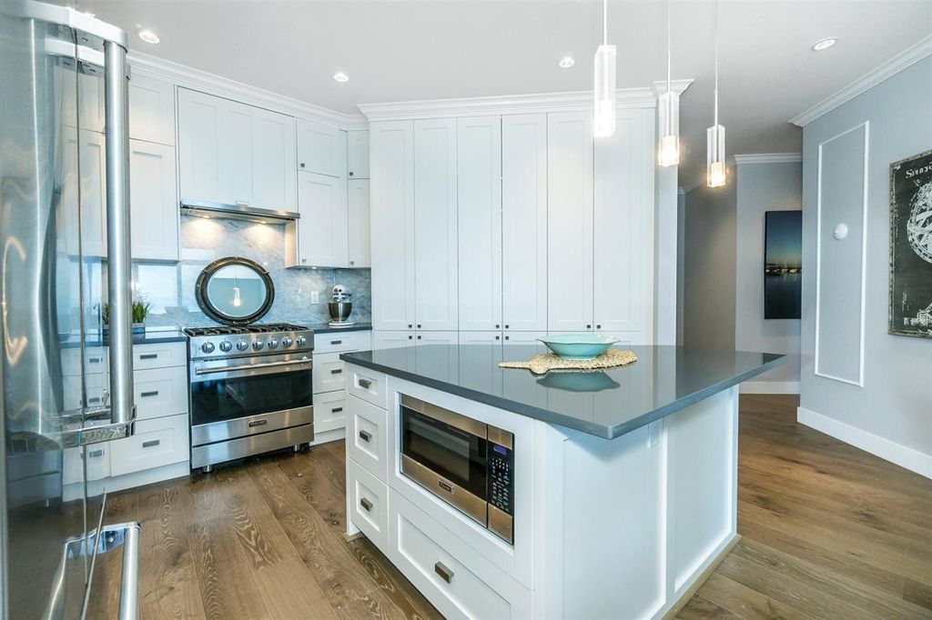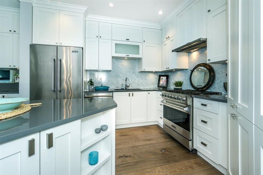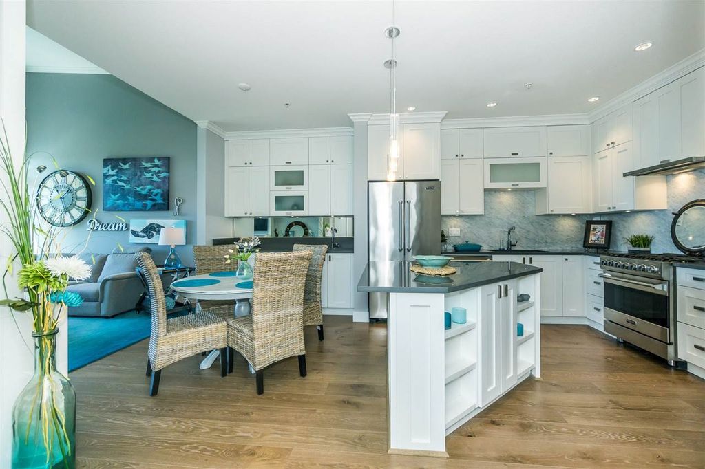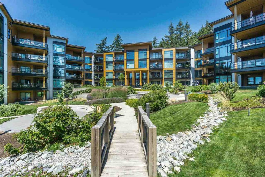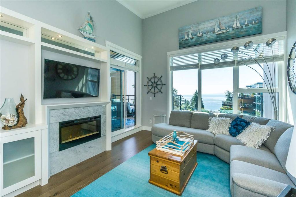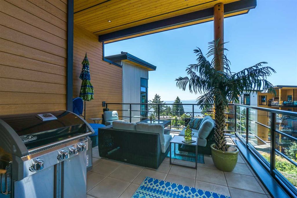Stunning south facing, ocean view penthouse in the most desirable development in White Rock- The Royce! Winner of 2016 Georgie Award, designed by award winning Ankenman Architects, this rarely available pentouse offers 1171 sq ft of elegance and luxury. Breathtaking water views from living room, kitchen, bedrooms & large 300 sq ft covered patio. Upgrades include swedish oak hrdwd floors,Viking Appliances, crown moldings, floor to ceiling built ins, quartz countertops, marble backsplash,wet bar with wine fridge,crystal fireplace, soaring 9 ft & 13 ft ceilings and floor to ceiling windows. Pet & rental friendly complex with upscale gym and club room, 2 parking spots,storage + bike/golf locker.Walk to the beach & WR centre, live the lifestyle you've dreamed of ! OPEN HOUSE Sat Sep 15th 2-4pm