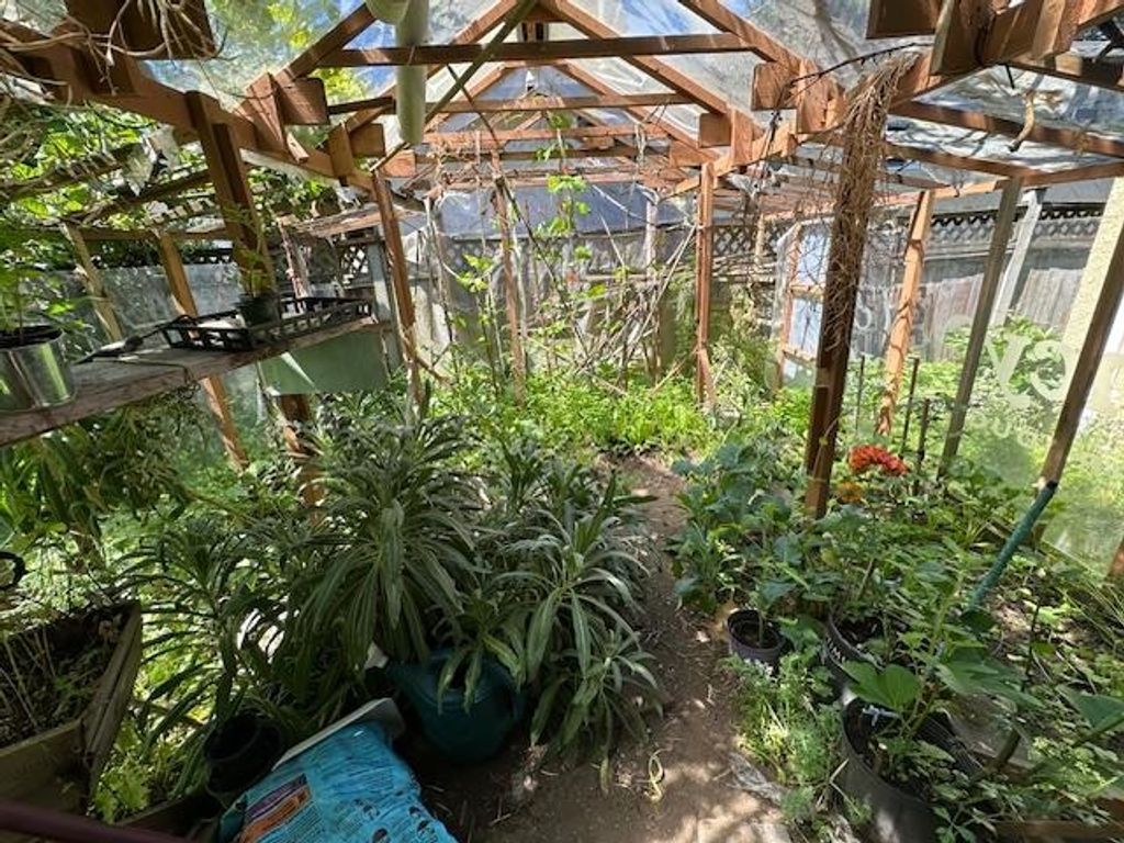 Charming rancher in White Rock on crawl space with radiant floor heating. Private south-facing back yard filled with fruit trees, and a large deck to enjoy all year round. Grow your own vegetables in the large greenhouse and take advantage of extra storage in the 380 sq.ft. heated office/storage building. Single car garage with oversized ceiling plus a mezzanine. High rental demand area near Peace Arch Hospital, great neighbours and neighbourhood; current owner lived here since 2002. New RS-2 SSMUH zoning allows for higher density and multiple uses.