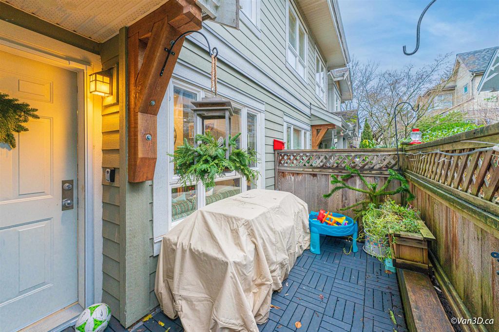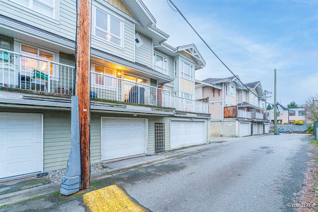 Well maintained 2 bedroom townhouse located in desirable Hamilton area just steps away from all amenities on Marine Drive. This well run small 18 unit complex is in a very walkable friendly neighborhood close to Heywood Park, transit and school. This bright 2 level south facing unit has outdoor deck and patio plus tandem double garage accessible from within. View the pictures to see how cozy and well appointed this unit is. New floors and carpeting throughout and new washer dryer. Very few 2 bedroom townhouses this size and price on the market. It won't last long.