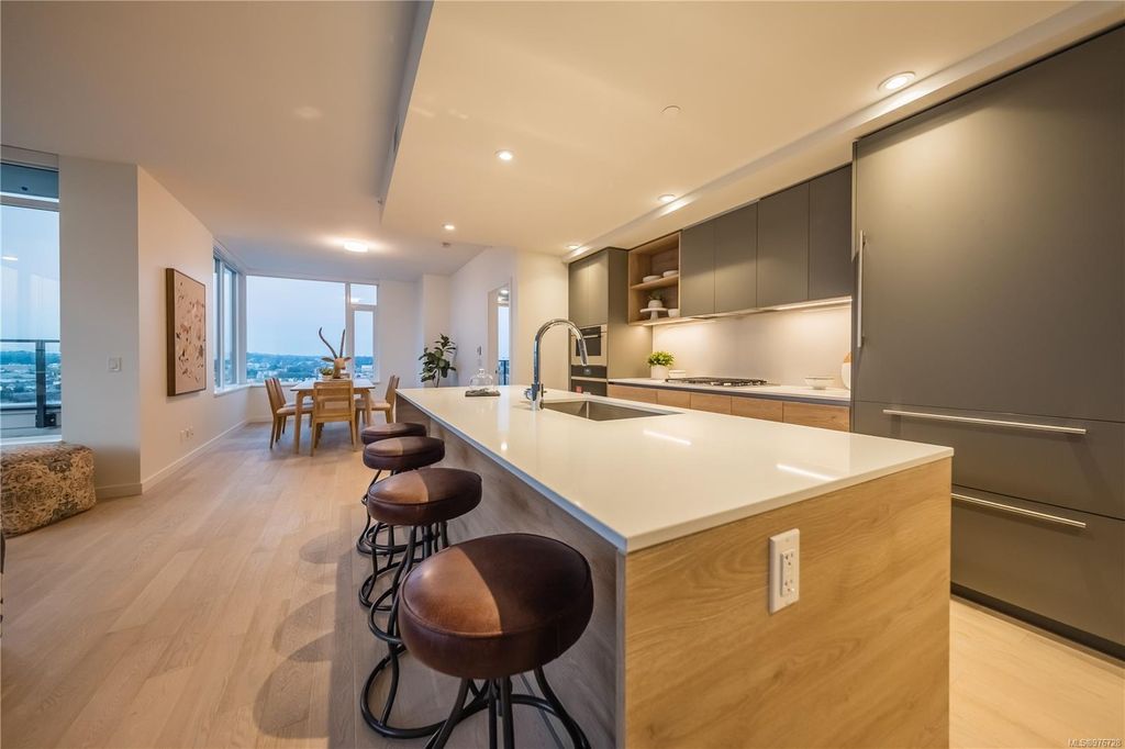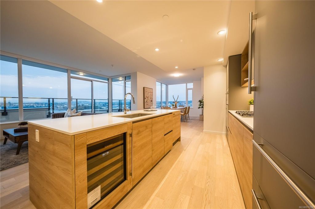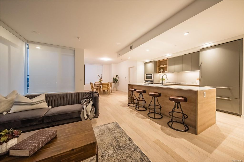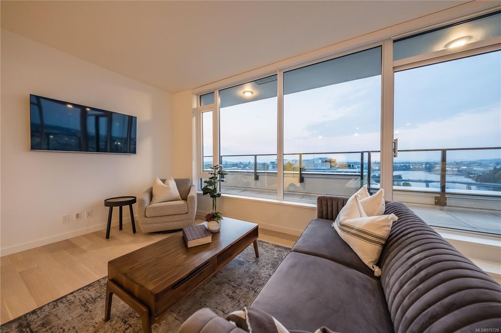 Discover a new standard of sustainable living in the heart of Victoria’s waterfront in this stunning 2-bed, 3-bath condo by Bosa Developments. This penthouse concrete residence is where Vic West gracefully meets downtown pairing the perfect blend of modern luxury with unparalleled water views. The thoughtfully designed floorplan measures 1258 sq/ft and includes separated bedrooms with dedicated ensuites and walk-in closets. The kitchen is a culinary enthusiast's dream, featuring high-end Wolf and Sub-Zero appliances making every meal a gourmet experience. You'll enjoy a host of exclusive amenities - ascend to the breathtaking rooftop patio or head downstairs to a well-equipped fitness facility and an inviting social lounge. Complete with two side-by-side parking stalls, storage, and pet-friendly. Be part of the transformational waterfront community that's set to redefine urban living in the city. Get ready to live on top of the city - this is more than just a condo; it's a lifestyle.