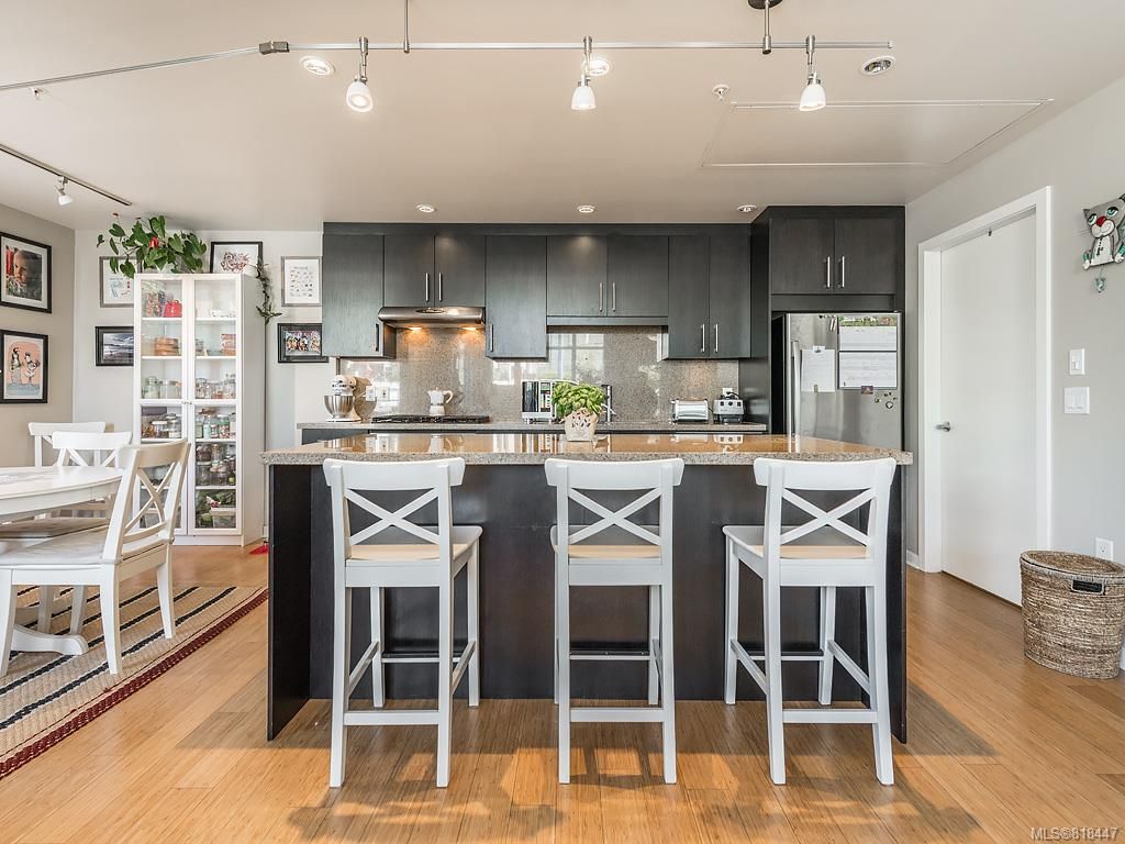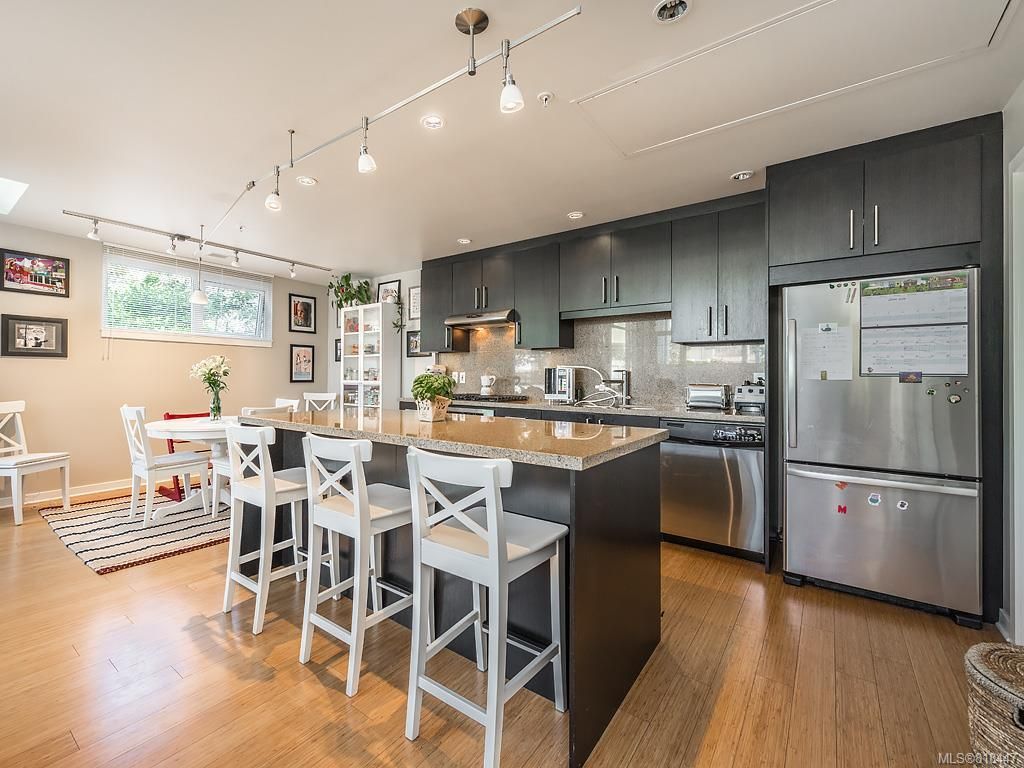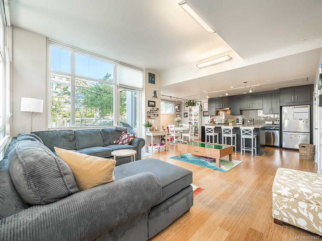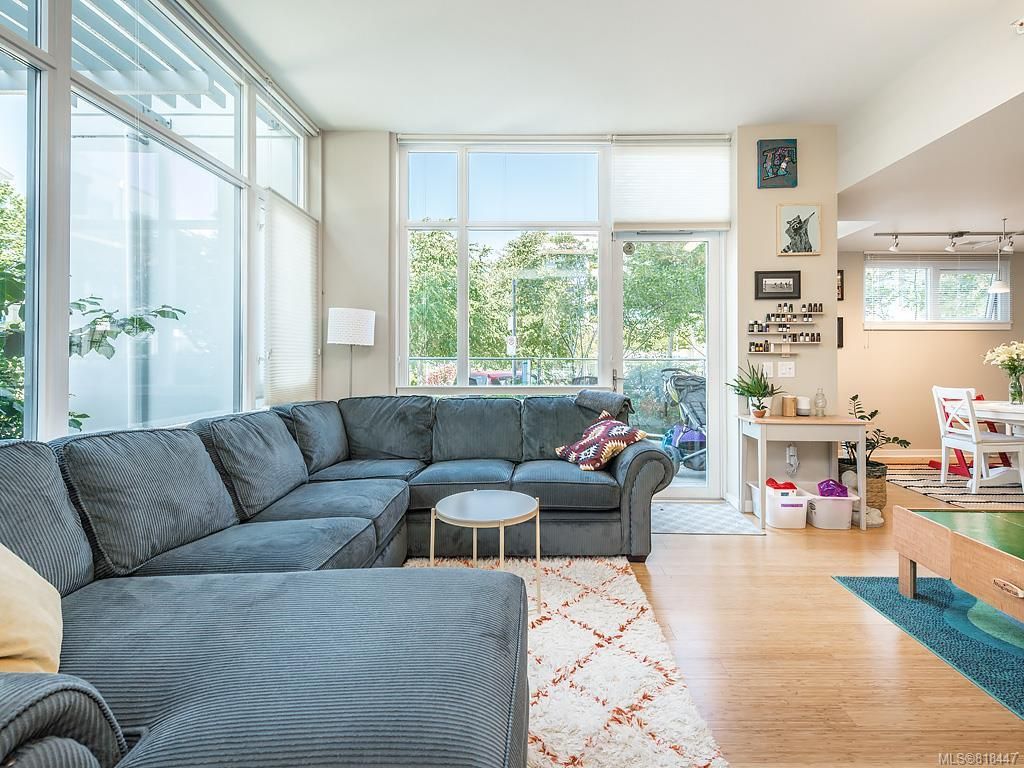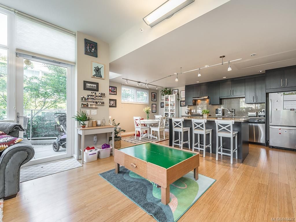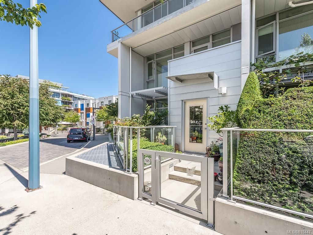 Don’t wait to view this spacious and bright townhome/2 level condo located in Dockside Green! This walk-out end unit boasts floor to ceiling windows with new blinds and over-height ceilings on the 2nd floor. Bamboo floors, granite counters & backsplash, new carpet, new lighting, and stylish bathrooms are a few of the modern features that make it move-in ready. The first floor has separate dining space, living room, and a private patio for your BBQ and happy hour (west facing). Dockside Green, a LEED™ Platinum project, is a steel and concrete building with unique onsite services committed to enhancing water conservation & reclamation, and sewage treatment. Walkable distance from Downtown, plus the immediate community has groceries, cafes, and all the amenities you need mere minutes away. Rentals and pets allowed, and dog owners will enjoy being able to step out of your own door to go for walks (large dogs ok here!). 2 parking stalls included and security system ready to go in unit.