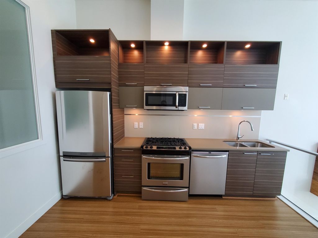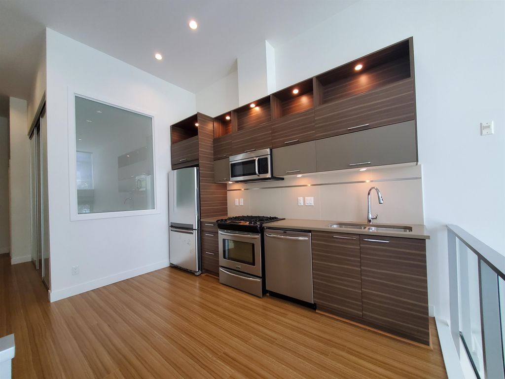 Very unique South facing 1 bedroom condo at "Origin" by Porte. Centrally located on Burnaby Mountain and steps away from the campus, bus loop, shops and services. The unit features 12 foot high ceilings with sunken living room. In-floor radiant heating, a gourmet kitchen - including stainless steel appliances and polished quartz countertops. Conveniently located on the ground floor with easy access and your own patio.