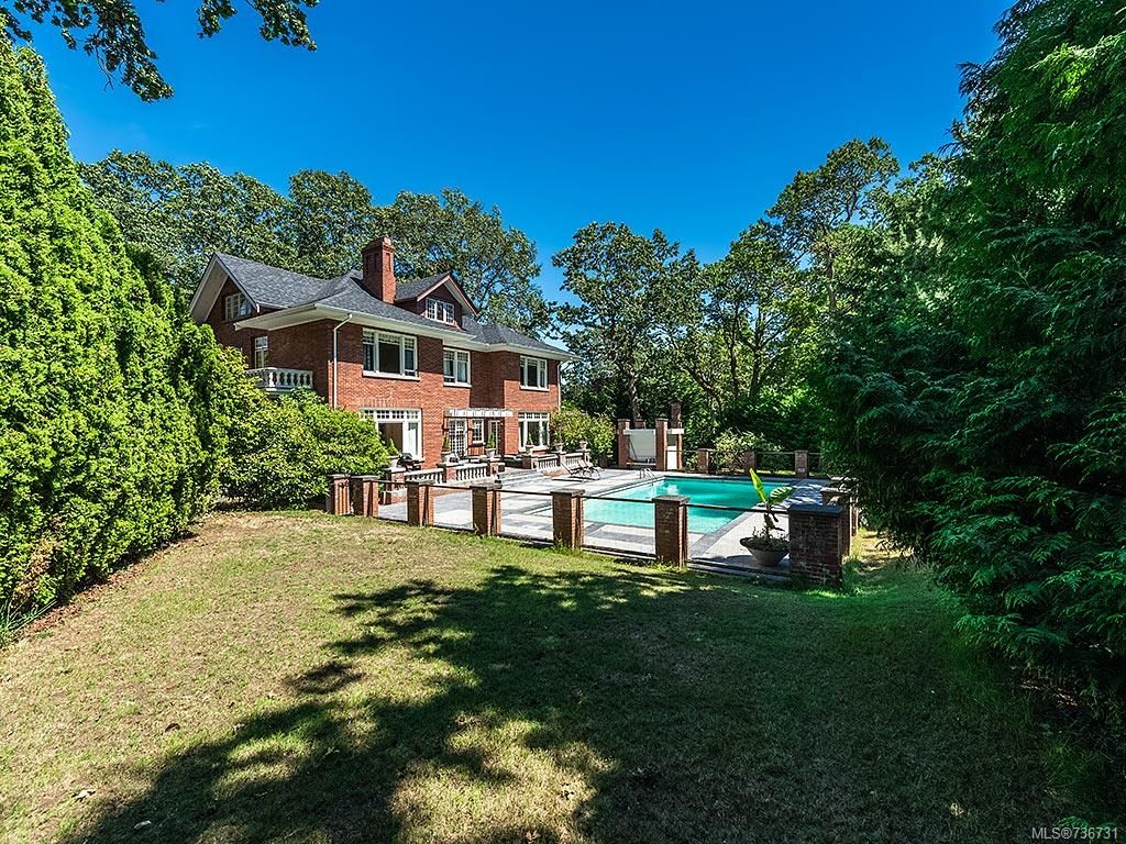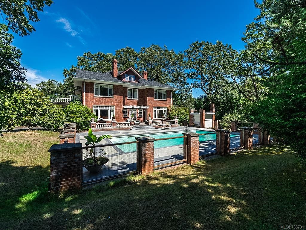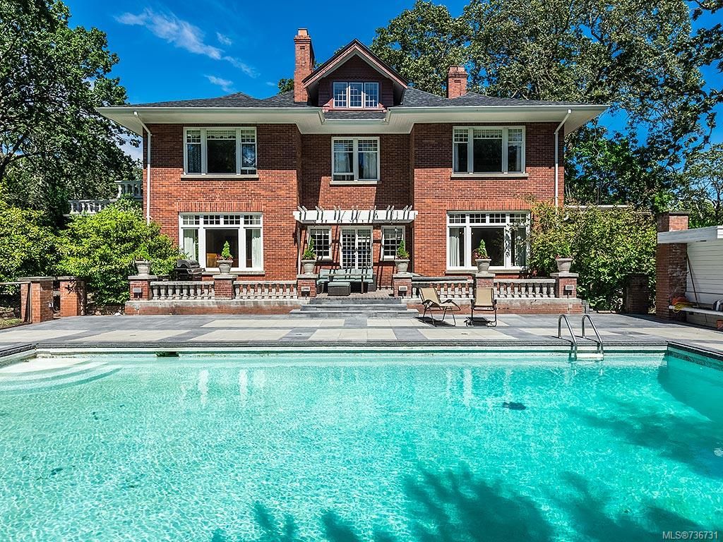 Stately character home located on .8 acre in the exclusive Uplands neighborhood. Architectectural values of Valrose are its grand scale, unique Georgian Revival symmetrical design, enriched with classical detail, porte cochere and stately brick exterior. Private grounds feature large outdoor pool with SW exposure, surrounded by expansive patio to enjoy sunny days. From the moment you enter the expansive foyer, with its grand staircase and wide hallways, you will immediately appreciate the character of this home. Main level features large living room, den and dining room, all with fireplaces and all overlooking gardens. Updated kitchen. 2nd level features 4 large bedrooms, balconies. 3rd level has games room, 5th bed + bath.