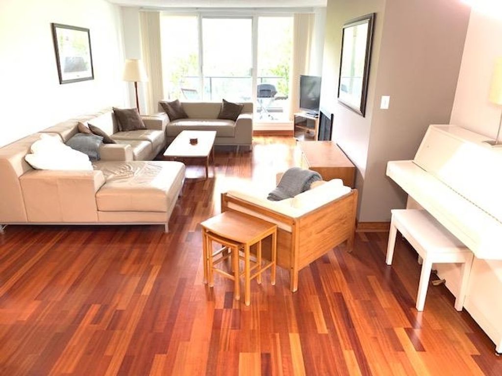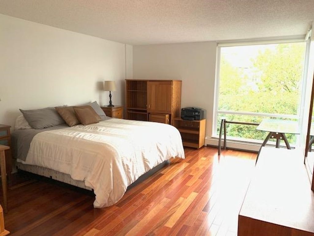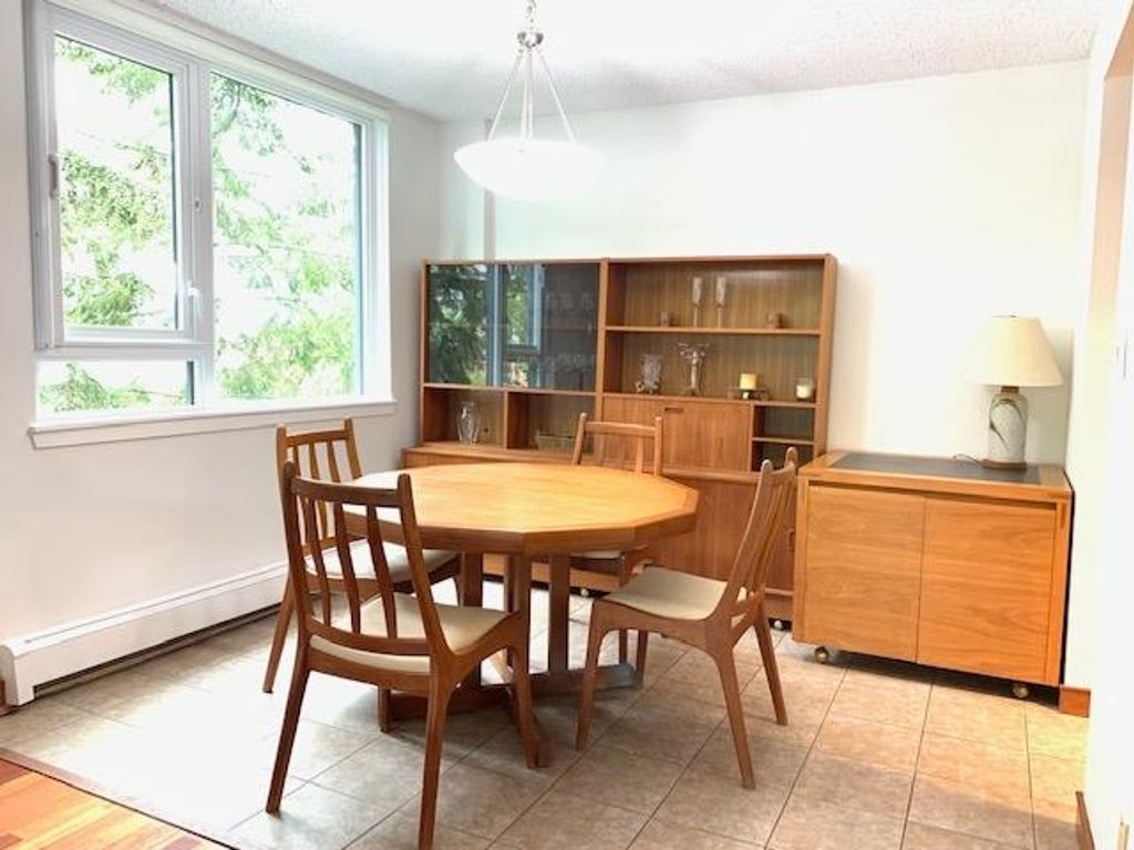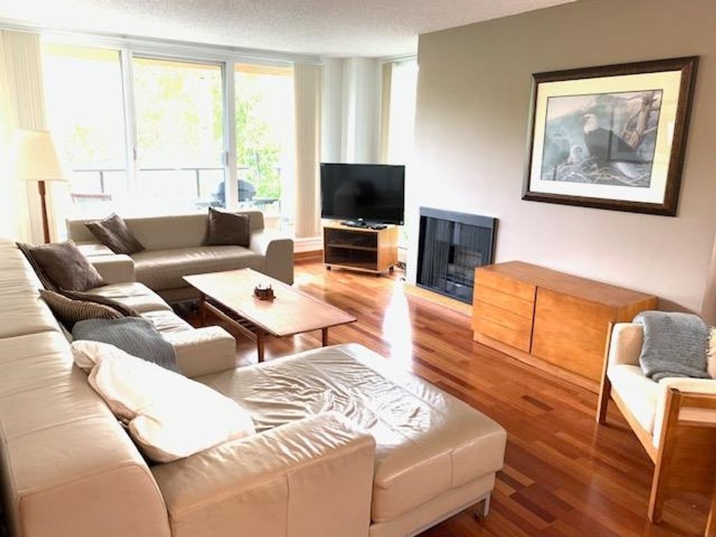 The Classic. Comfortable NW Corner suite in a quiet Concrete Building with Sunny western balcony and courtyard gardens below. Great layout, extra large rooms, 1344 sq ft. Primary bedroom has hardwood flooring and can accommodate a King size bed with a walk in closet, two full bathrooms, hardwood floors i second bedroom and living room also newer stainless steel appliances, tiled floor i oyer, laundry, dinning room and kitchen with teak cabinets. View of Beach Grov Golf course from dining room. Includes wonderful workshop, recreation and sauna oom. Building has been re-piped and has new windows.