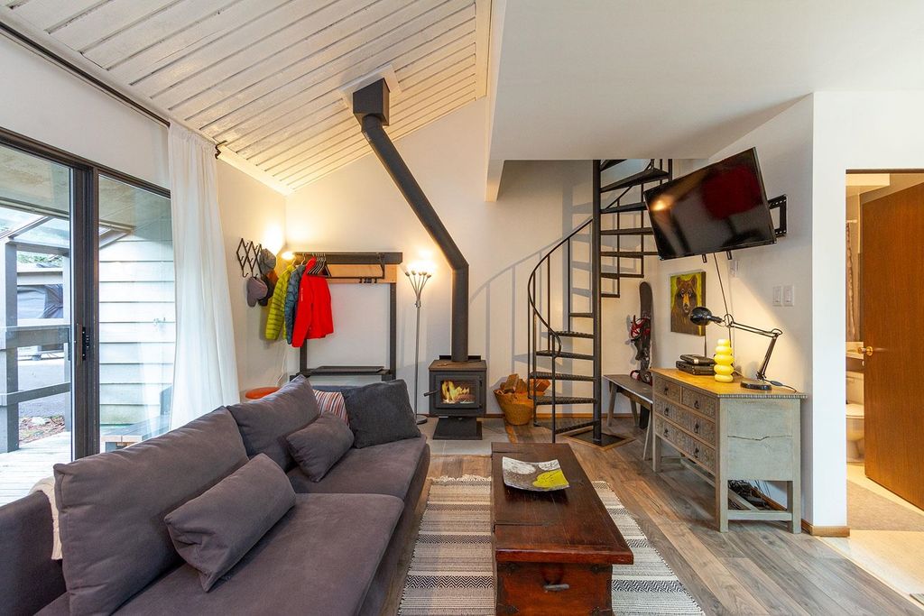 Welcome to Alpine Villa Ltd., Whistler's best kept secret. This unit has been stylishly restored with recent updates including new fridge, dishwasher, washer/dryer, new paint and flooring throughout, brand new WETT-certified fireplace and all new interior/ exterior piping and cricket, new roof snow stops, new triple-pane windows upstairs, new glass canopy, posts and railings, newer HW tank and a stunning, custom king-sized custom bedroom with additional lofts suitable for storage or additional sleeping for up to 2 more people. Being sold fully furnished. Property is a corporate share purchase, and the offers multiple common areas with stunning Nita Lake views and parking for up to 4 cars. There's simply no better value in Whistler. No GST and no Property Transfer Tax!