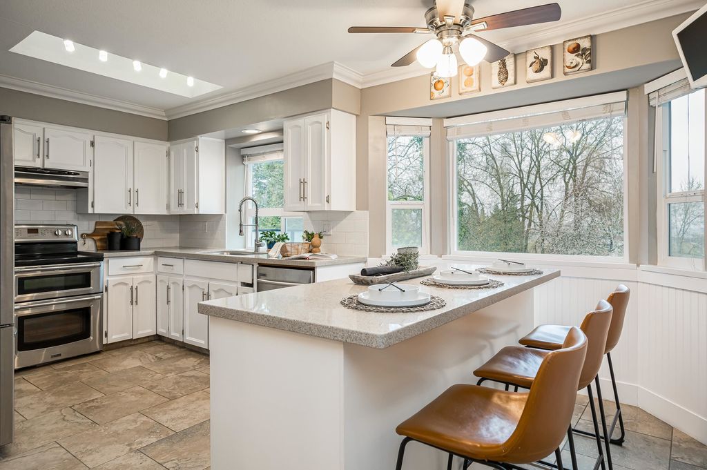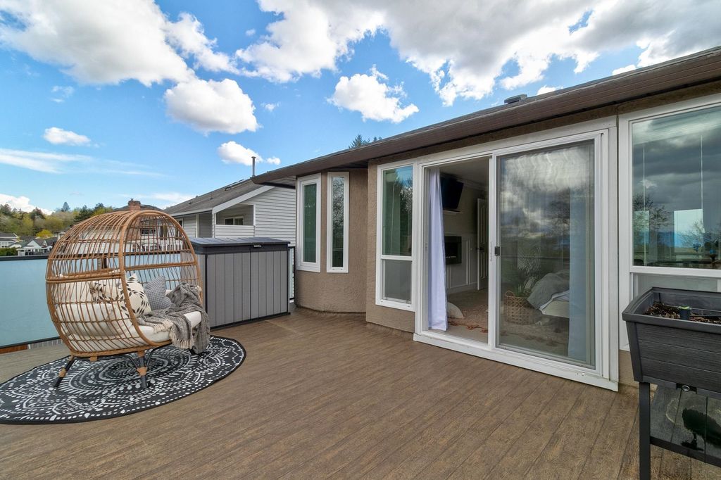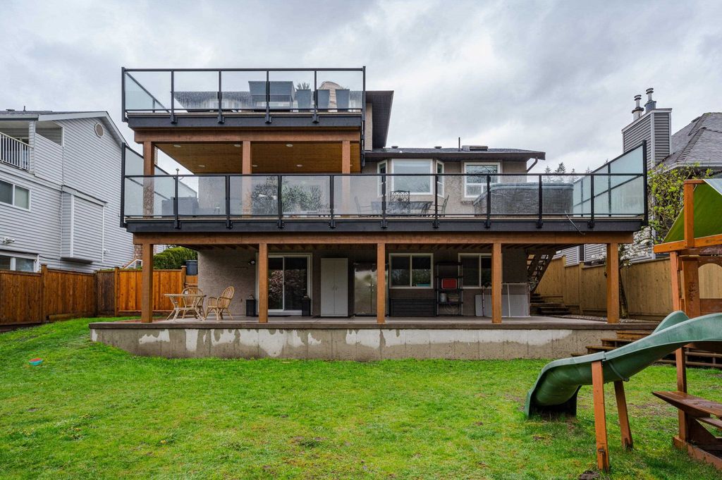 Incredible mountain, river & bridge views from this beautifully updated 2725 sq ft 2 storey w/ WALK OUT bsmt & mortgage helper! Sitting on a quiet, no thru street, it has 4 bdrms (3 up,1 down) & 4 bthrms! Main flr offers a formal living rm w/ gas fireplace & dining rm w/ built ins. Head to the kitchen w/ white cabinets, S/S appliances & island seating for 3. The family rm is great for tv time & leads to the massive covered deck perfect to bbq year round! Relax in the hot tub looking out at the private space! The 2 pc powder rm & laundry complete the main flr pkg. Head up to the 3 large bdrms, 4 pc main bth & master retreat boasting a 3 pc ensuite & sliders leading to the top deck w/ incredible views! Down has a 1 bdrm suite, den & 4 pc bth. Stunning reno w/ new roof, newer windows & more!