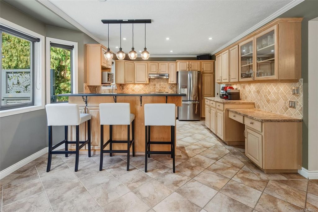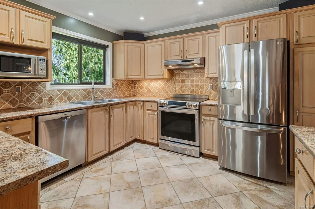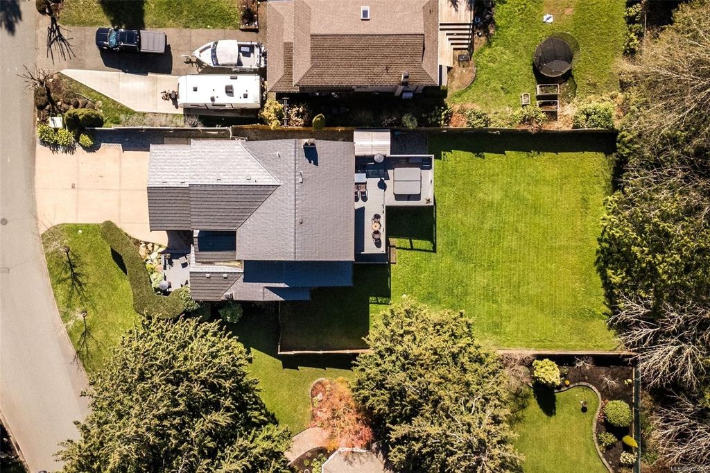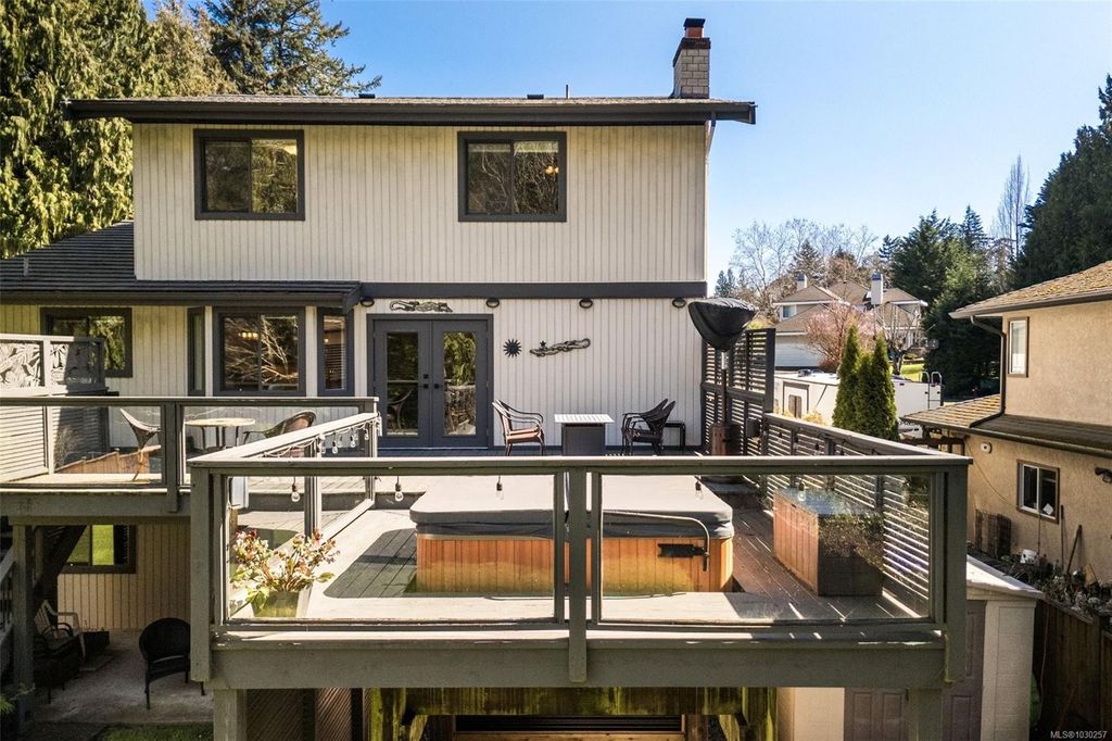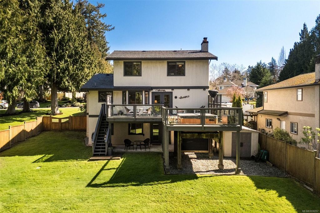 RARE 3 level Cordova Bay home with sundrenched backyard—bring your ideas and make this your perfect forever home! Tucked away on a quiet cul-de-sac and backing onto protected ALR land, this property offers privacy & a peaceful setting. With over 3,800 sq ft, 6 bedrooms, and 4 bathrooms, the home features a functional layout ideal for growing or multi-generational families. Generous room sizes & multiple living areas provide flexibility for everyday living and entertaining. The 11,600+ sq ft west-facing yard is perfect for kids, pets, and outdoor living. Features include a 50-year metal roof, hardwood floors, stamped concrete driveway, heated tile in the kitchen and bathrooms, induction stove, new stainless steel fridge, and exterior paint (2019). Upstairs offers 3 full bedrooms, and the finished, full-height walk-out basement has 1–2 bedroom suite potential (plans available)—ideal for extended family or income. Close to Claremont High, beaches, and amenities. This one won’t last!