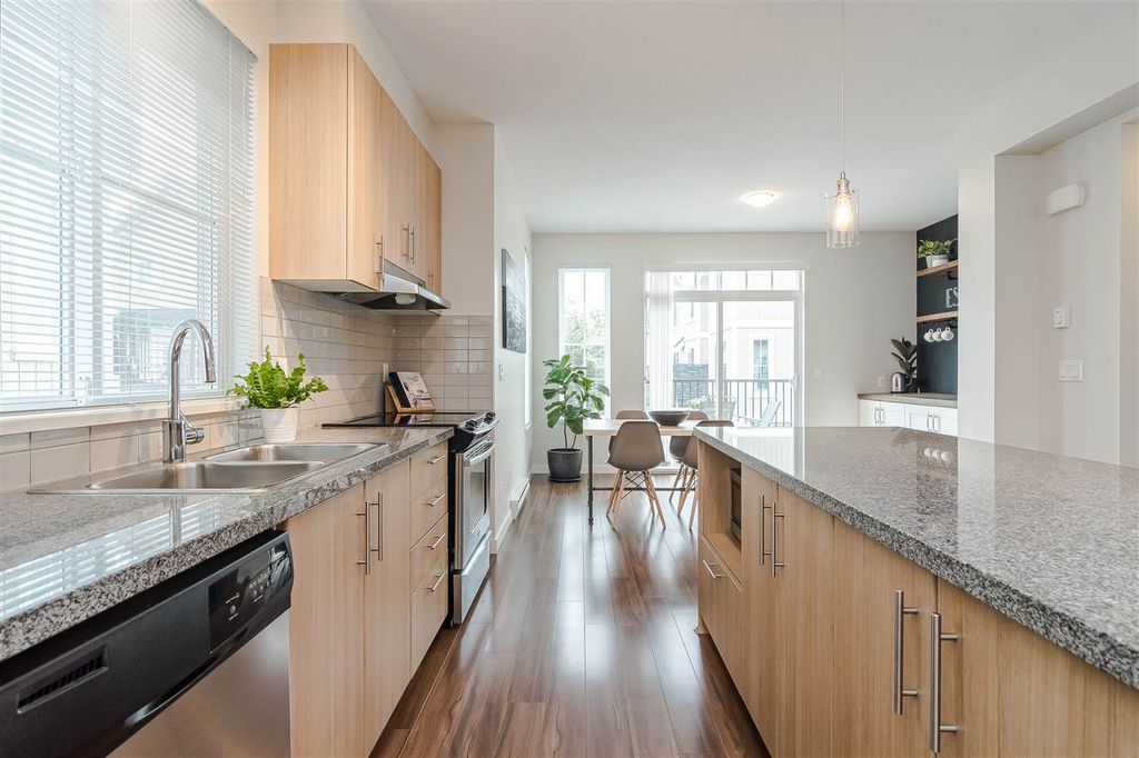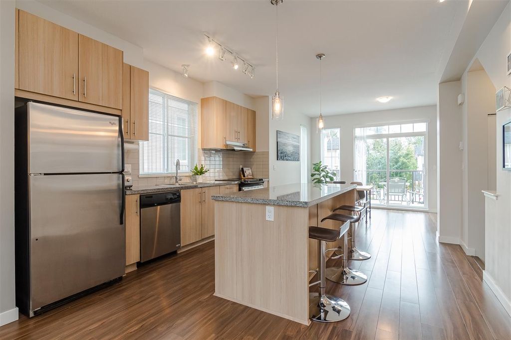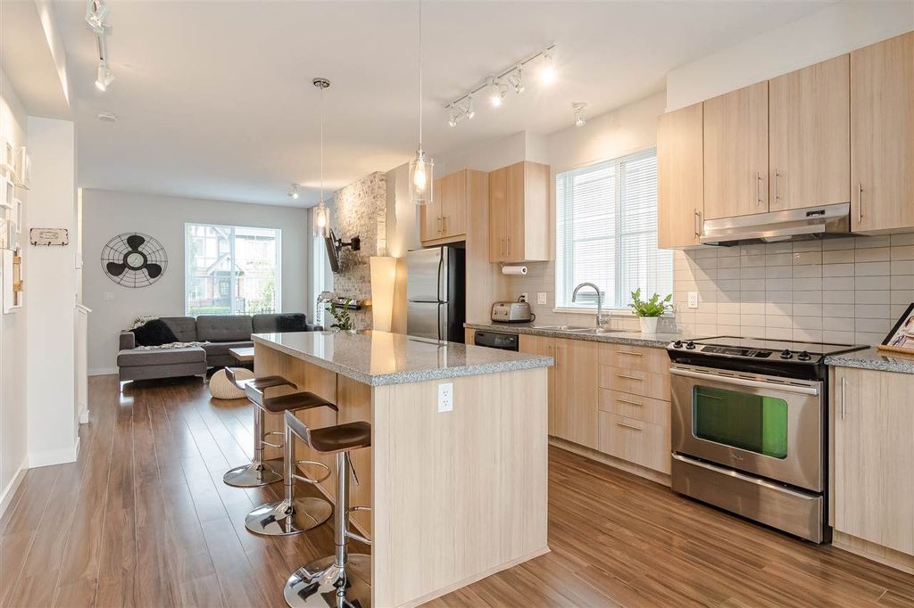 Welcome home to Harvest at Westerleigh! You will appreciate the location of this END unit townhome facing Westridge and featuring full driveway and neighboring visitor parking. Showing like new, enjoy the open main floor including gourmet kitchen with granite and stainless, feature rock wall and custom built in coffee bar. Find two large bedrooms above plus laundry and two full bathrooms. Harvest includes one of Abbotsford's finest Clubhouses fully loaded with fitness area, billiards room, pet wash area, kitchen/lounge area, indoor hockey, playground and beautiful outdoor pool. Well run strata with low fee of $223/month, allowing rentals and two dogs/cats or one of each. Close proximity to schools, some shopping, recreation and more. This townhouse is definitely worth a look!