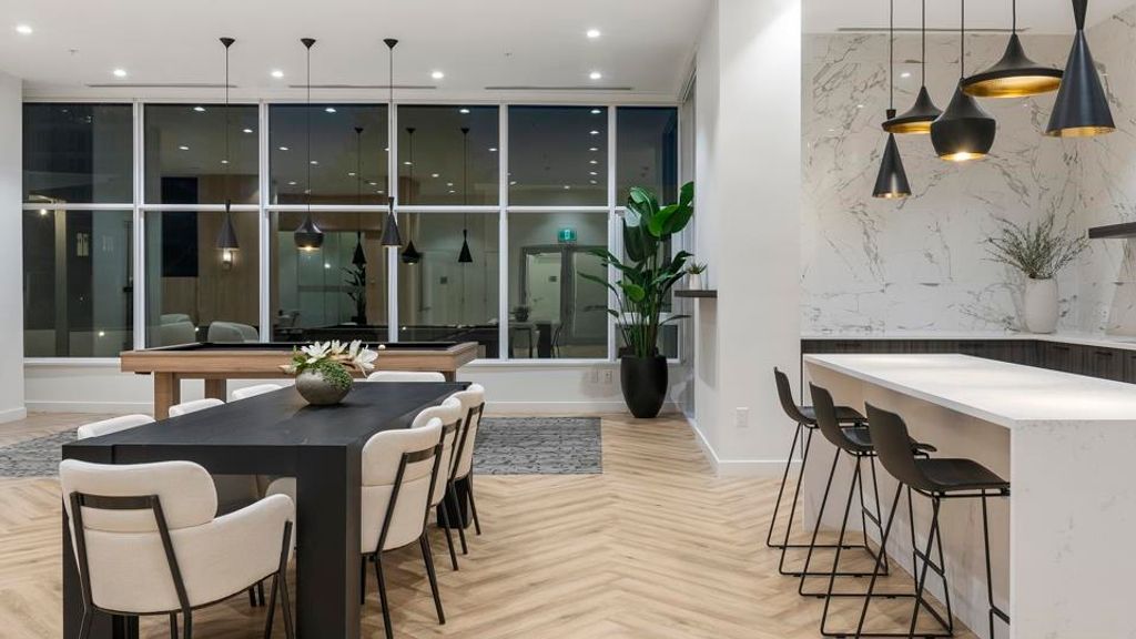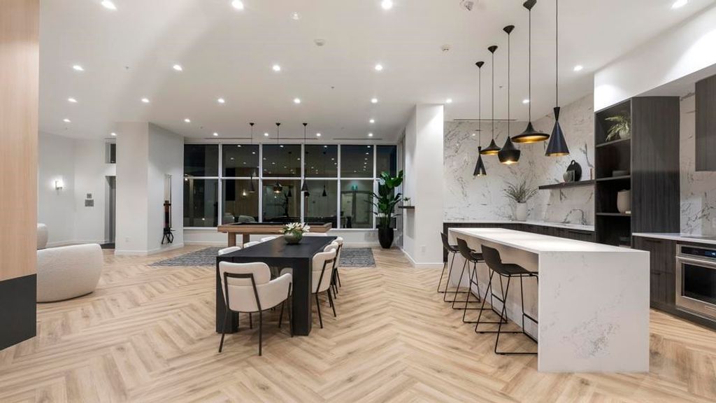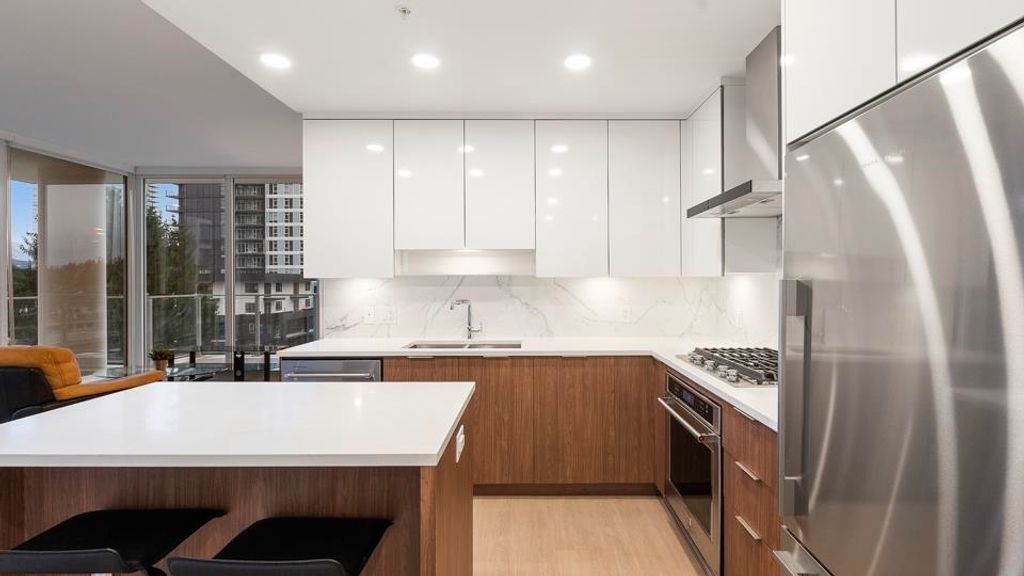 Stunning 2BR 2BTH West Coquitlam condo. This hotel-inspired Ledingham McAllister home welcomes you w/ 9’ ceilings, a/c & dazzling floor-to-ceiling windows that open onto your massive, wraparound balcony highlighting panoramic city & mountain views. Your modern, gourmet kitchen boasts quartz composite counters & contemporary Carrara-inspired porcelain tile backsplash. Each well-appointed bedroom is found on opposite sides of the home ensuring maximum privacy w/ primary bed offering an enviable, spa-like ensuite. Indulge in pet-friendly Precidia’s 10,000 SQFT of indoor/outdoor amenities, incl. a fully-equipped gym, fireside lounge, guest suites & a landscaped outdoor terrace w/ cabanas & harvest dining area. Walk to skytrain, shopping, restaurants & recreation w/ easy access to major routes.