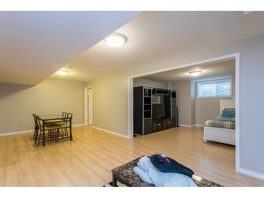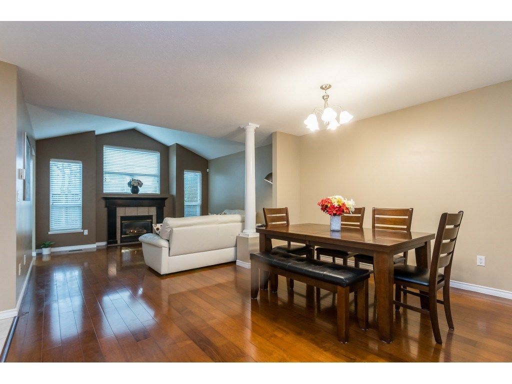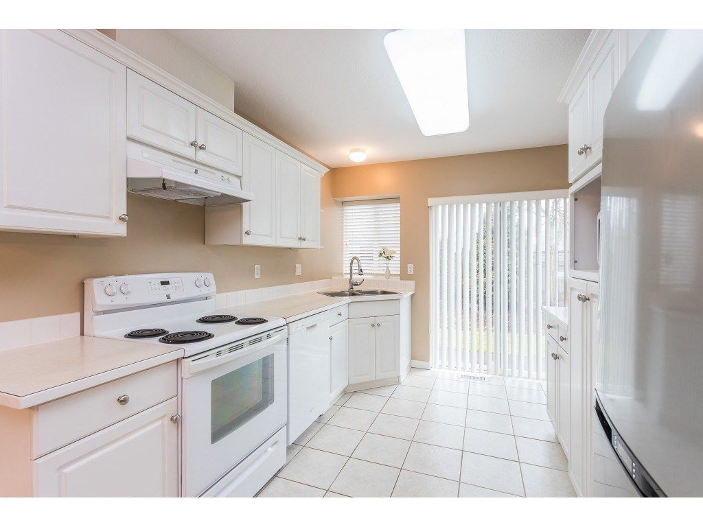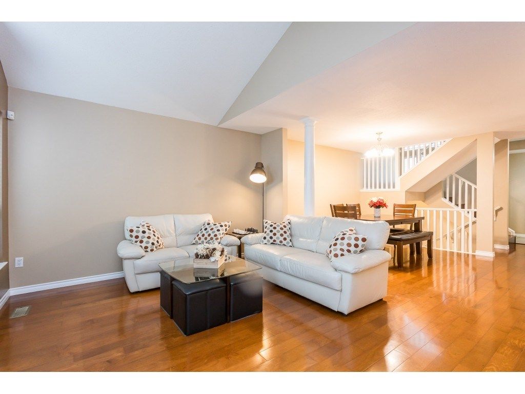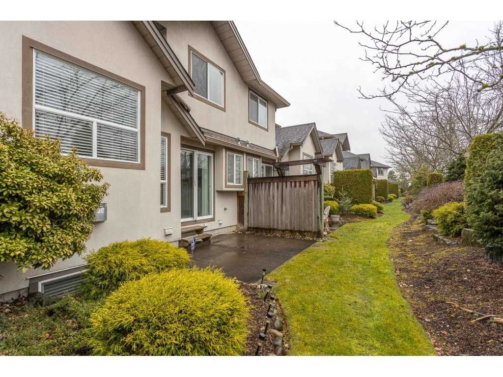 McMillan community. One of the most popular townhouse complex in East Abbotsford. Great schools nearyby. Walk to Yale Secondary, W.A. Fraser Middle School, McMillan Elementary, Tennis court and Abbotsford Recreation Centre that offers swimming pool, ice rink, fitness centre and etc. Desirable inside unit with a private fenced backyard with park behind your fence. Side by side garage and 2 extra parking stalls in front of your garage. Laminate flooring throughout with a finished basement. Excellent condition!