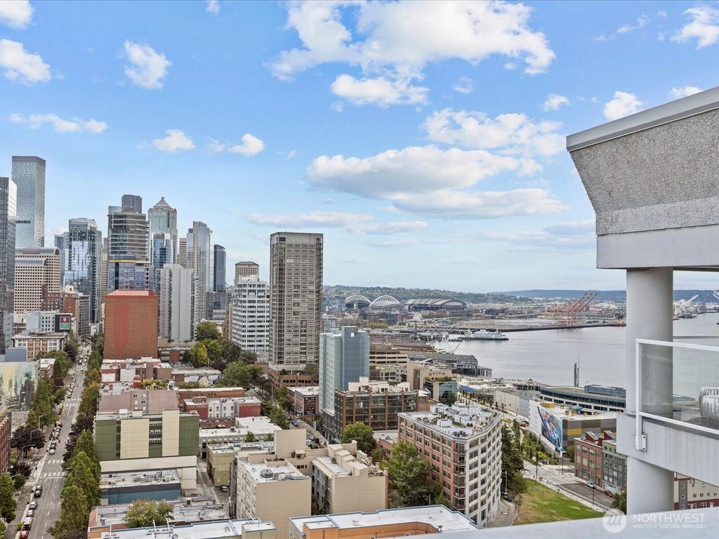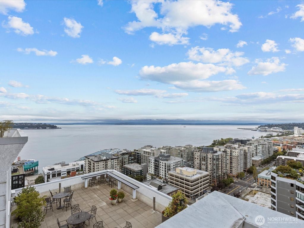 Enjoy breathtaking views of the Sound, mountains and city skyline from this beautiful southwest corner unit. Located in Arbor Place, a premier concrete and steel high-rise, this residence offers resort-style living with exceptional amenities. A 24/7 concierge, pool, sauna, jacuzzi, fitness center, community room, business center, guest suite, designated parking in secured garage and multiple roof top decks! Positioned in one of Belltown's most sought-after buildings, you are just steps away from everything downtown Seattle has to offer. Walk Score of 97!! Seller financing available with 20% down, 5.04% APR. Payment $2,066/month Interest only!